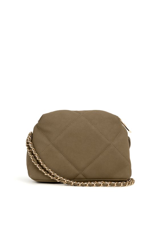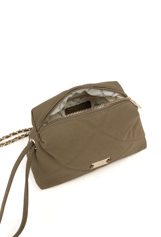 Mała torebka damska z efektownym pikowaniem. Torba jednokomorowa o jasnej, logowanej podszewce z dodatkowymi kieszonkami na drobiazgi. Torba zawieszona jest na pasku z subtelnym elementem łańcuszka, który dodaje jej wyjątkowego charakteru. Torbę należy przechowywać w dołączonym woreczku. Wymiary: 22 cm x 16 cm x 9 cm.