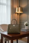 Torba damska z pikowaniem z kolekcji Premium. Dwukomorowy model z jasnymi, logowanymi podszewkami, zapinany na suwaki. Wewnątrz znajdują się praktyczne kieszonki na drobiazgi. Torba zawieszona na rączkach, a w zestawie dołączono pasek z regulacją. Wymiary: 37 cm x 24 cm 14 cm. Torbę należy przechowywać w dołączonym woreczku.