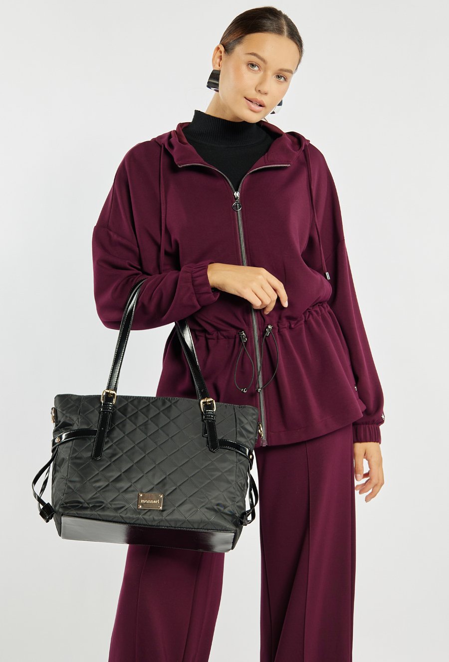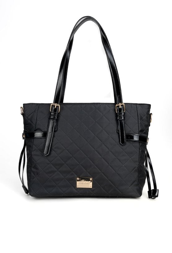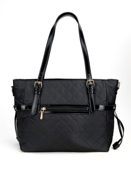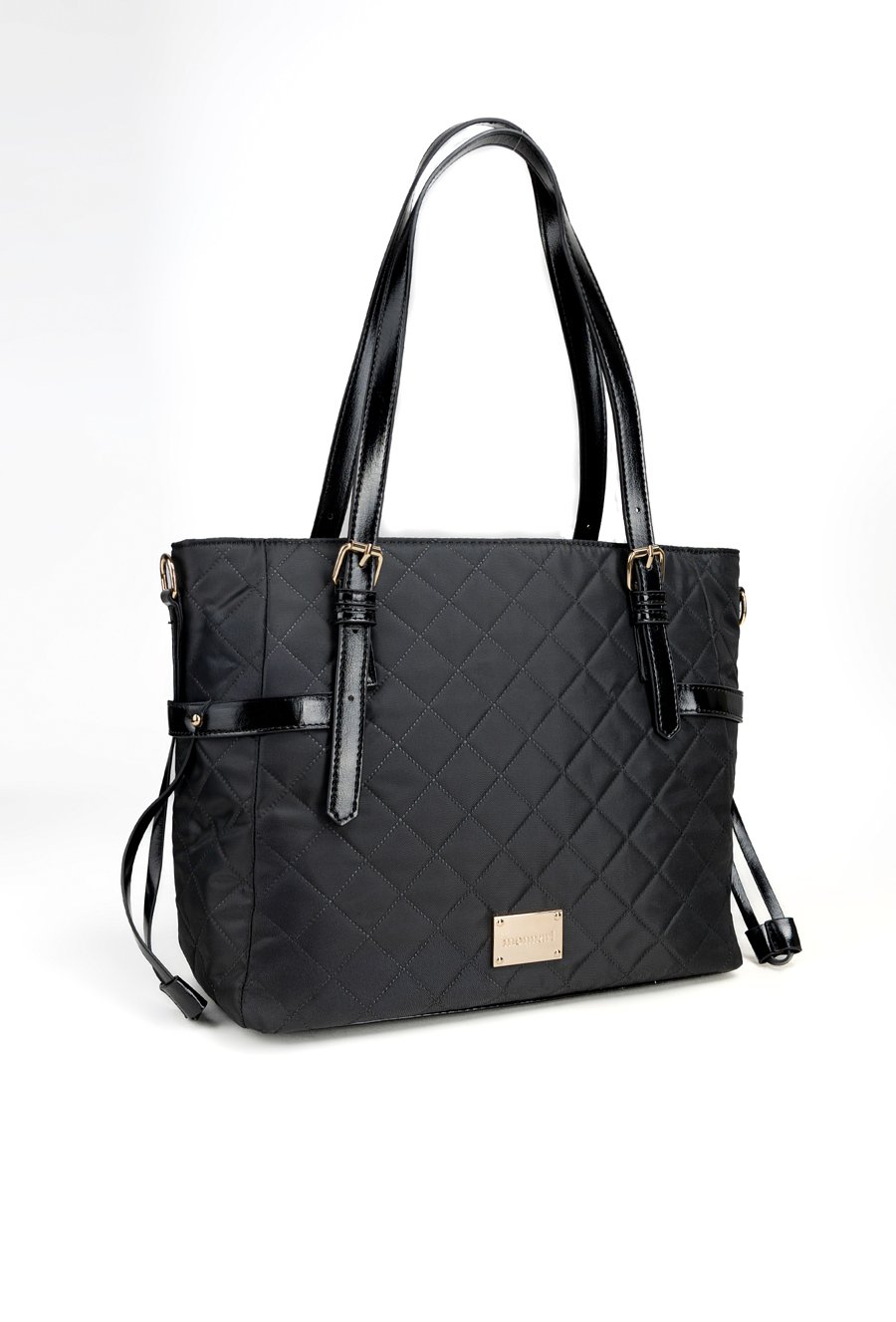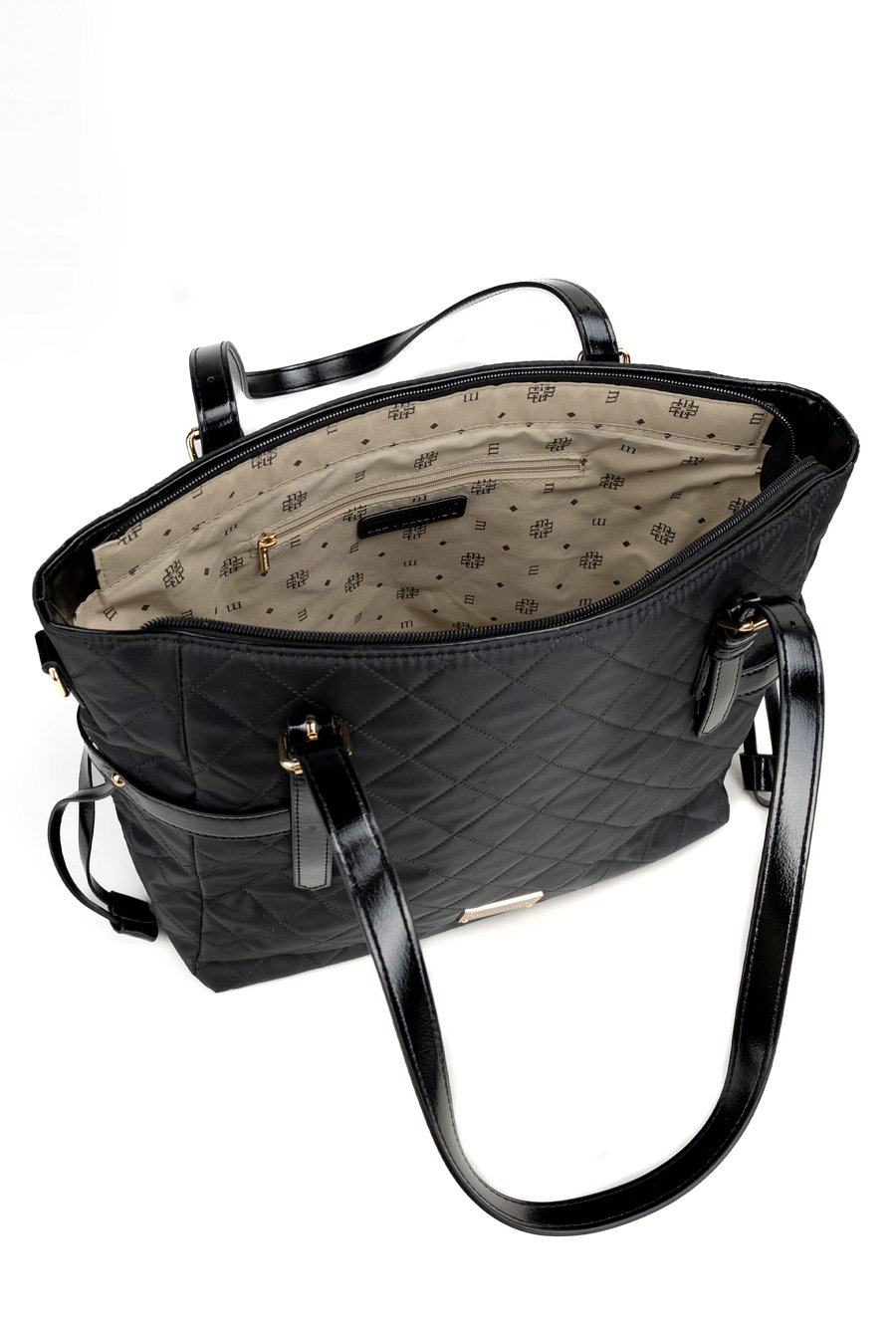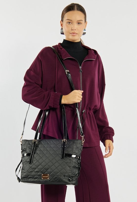 Stylowa torba damska o wymiarach 40 × 29 × 13 cm, wykonana z pikowanego materiału, który nadaje jej elegancki i nowoczesny charakter. Model jednokomorowy, z jasną, logowaną podszewką oraz praktycznymi kieszonkami na drobne akcesoria. Torba wyposażona jest w regulowane rączki, umożliwiające noszenie jej na różne sposoby, a także w odpinany pasek, który dodaje funkcjonalności i wygody. Całość zapinana na zamek błyskawiczny. Torbę należy przechowywać w załączonym woreczku.