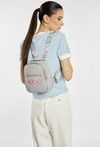 Mały plecak damski z haftowanym logo marki NOBO to stylowy i praktyczny dodatek na co dzień. Plecak jest jednokomorowy, ma jasną, logowaną podszewkę oraz dodatkowe kieszonki na drobiazgi, które ułatwiają organizację. Plecak wyposażono w regulowane, wzorzyste ramiączka, dzięki czemu łatwo dopasujesz go do swoich potrzeb i zapewnisz sobie komfort noszenia. Należy przechowywać w dołączonym woreczku. Wymiary: 18 cm x 22,5 cm x 8 cm.