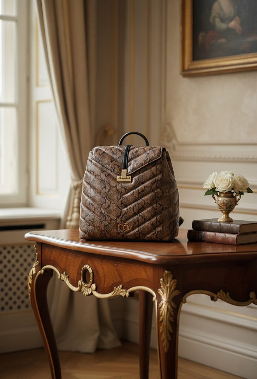 "Pikowany plecak damski to połączenie miejskiego stylu i codziennej funkcjonalności. Plecak został wyposażony w jednokomorowe wnętrze z jasną, logowaną podszewką oraz praktycznymi kieszonkami, które pomagają w organizacji najpotrzebniejszych drobiazgów. Model zapinany na klapę prezentuje się elegancko. Lekki, stylowy i wygodny – idealny do miejskich stylizacji i codziennego użytku. Torbę należy przechowywać w dołączonym woreczku. Wymiary: 34 cm x 30 cm x 13 cm. "