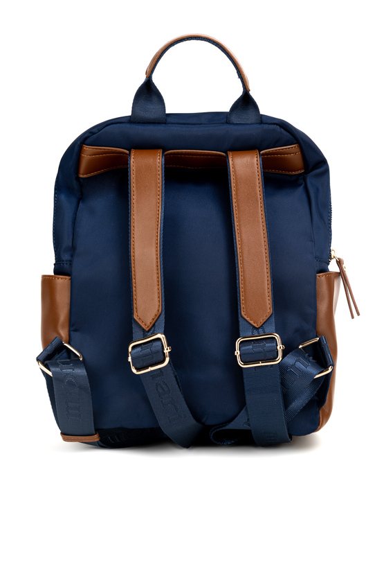 Tekstylny plecak damski na co dzień o wymiarach 23 × 32 × 11 cm. Plecak jednokomorowy, z jasną, logowaną podszewką i dodatkowymi kieszonkami na drobiazgi. Plecak zawieszony na wygodnej rączce oraz regulowanych paskach, co zapewnia komfort noszenia. Należy przechowywać w dołączonym woreczku.