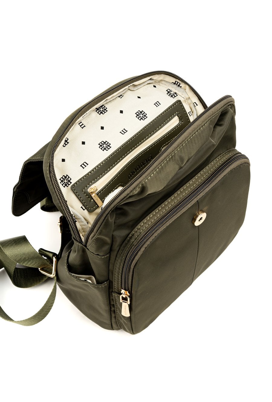 Plecak damski o wymiarach 25 × 29 × 11 cm. Plecak jednokomorowy z jasną, logowaną podszewką oraz dodatkowymi kieszonkami na drobiazgi. Plecak wyposażony jest w klapę oraz suwak, co zwiększa bezpieczeństwo przechowywanych rzeczy. Idealny do codziennego użytku.