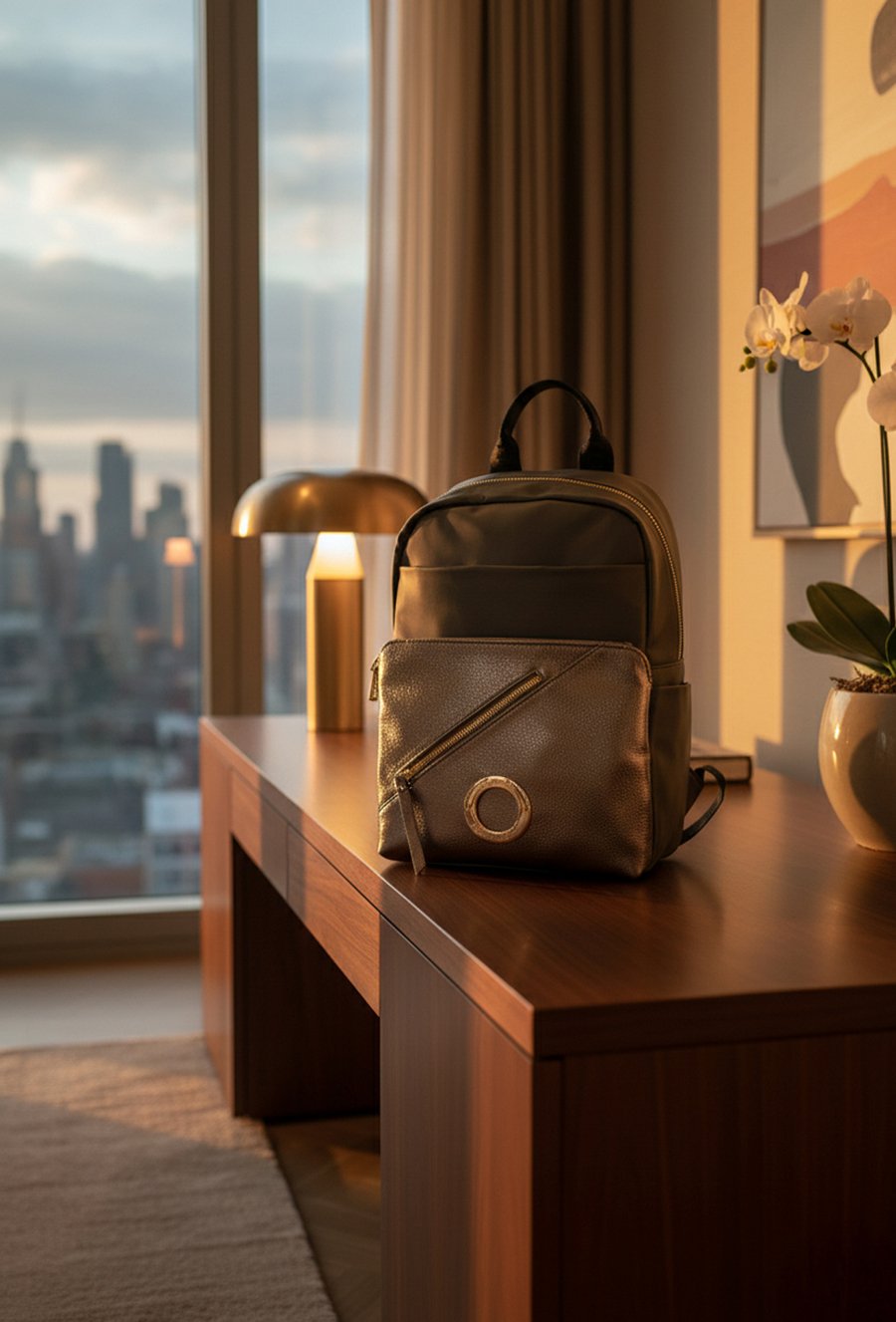 Plecak damski z kolekcji Premium o wymiarach: 25 cm x 32 cm x 11 cm. Plecak jednokomorowy o jasnej logowanej podszewce, wyposażony w praktyczne kieszonki wewnętrzne, idealne na drobiazgi. Dodatkowe zapinane kieszenie z przodu zapewniają łatwy dostęp do najpotrzebniejszych rzeczy. Z boku brak zapięć- przestrzeń świetnie sprawdzi się np. na butelkę z wodą. wyposażony został w praktyczne kieszonki wewnętrzne, idealne na drobiazgi.