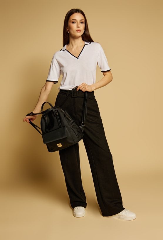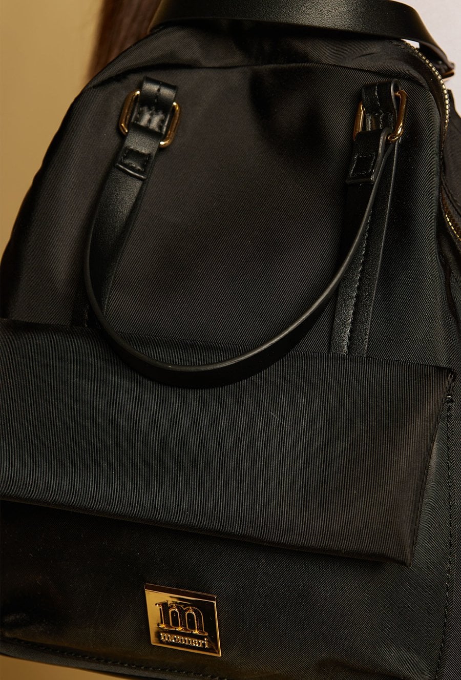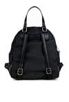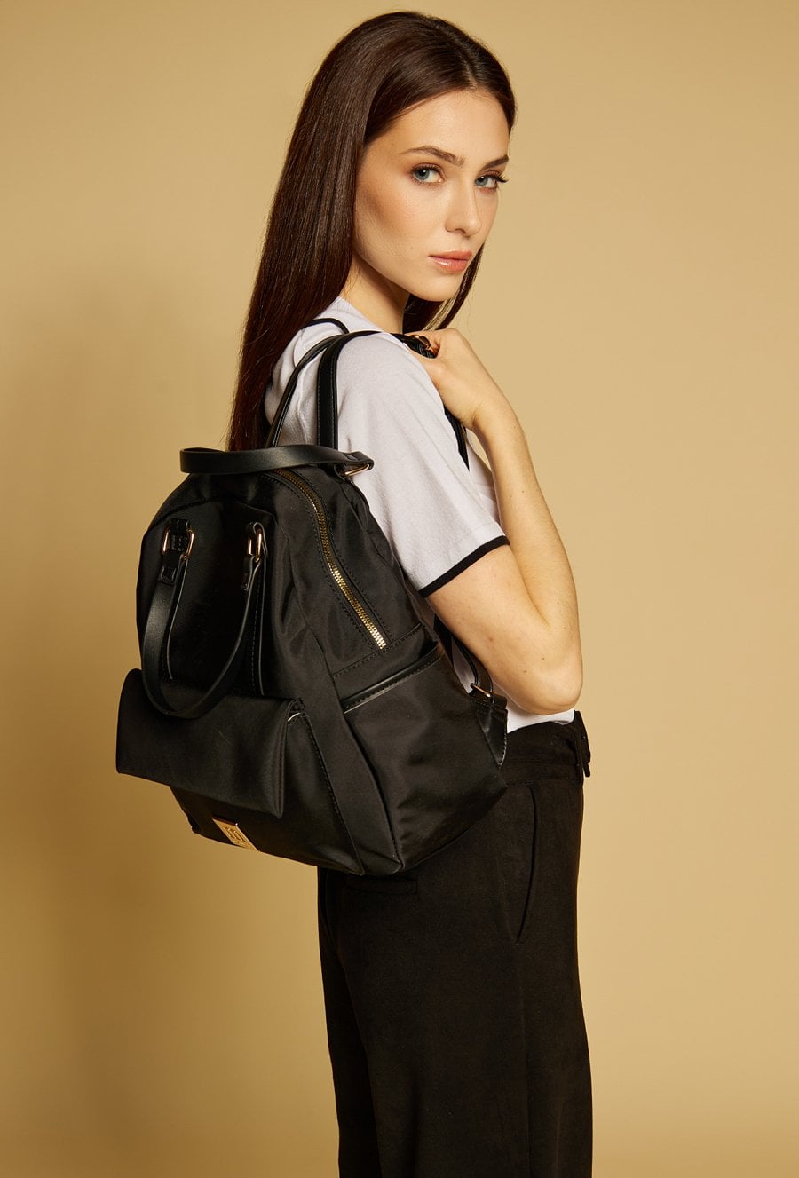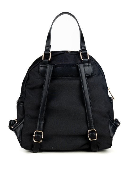 Tekstylny plecak damski o wymiarach 30 cm x 36 cm x 12 cm. Model jednokomorowy, z jasną, logowaną podszewką oraz dodatkowymi kieszonkami wewnątrz, które ułatwiają organizację. Wyposażony w rączkę do noszenia w dłoni oraz regulowane paski, zapewniające wygodę i dopasowanie do sylwetki. Idealny na co dzień Torbę należy przechowywać w dołączonym woreczku.