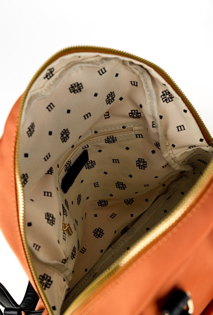 Tekstylny plecak damski o wymiarach 30 cm x 36 cm x 12 cm. Model jednokomorowy, z jasną, logowaną podszewką oraz dodatkowymi kieszonkami wewnątrz, które ułatwiają organizację. Wyposażony w rączkę do noszenia w dłoni oraz regulowane paski, zapewniające wygodę i dopasowanie do sylwetki. Idealny na co dzień Torbę należy przechowywać w dołączonym woreczku.