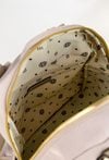 Tekstylny plecak damski o wymiarach 30 cm x 36 cm x 12 cm. Model jednokomorowy, z jasną, logowaną podszewką oraz dodatkowymi kieszonkami wewnątrz, które ułatwiają organizację. Wyposażony w rączkę do noszenia w dłoni oraz regulowane paski, zapewniające wygodę i dopasowanie do sylwetki. Idealny na co dzień Torbę należy przechowywać w dołączonym woreczku.