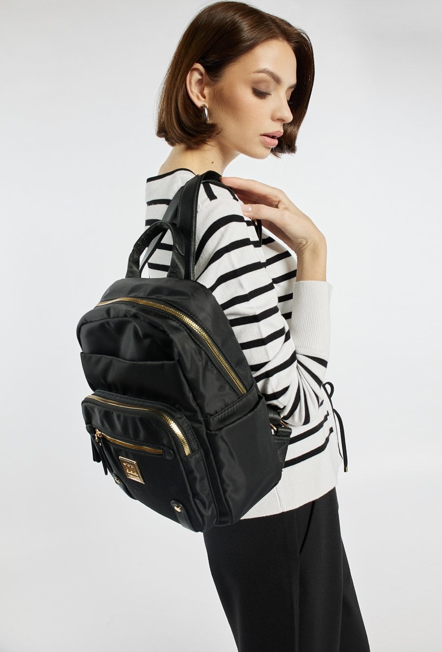 Tekstylny plecak damski o wymiarach: 27 cm x 30 cm x 11 cm, to idealny wybór na co dzień. Jednokomorowy model wykończony jasną, logowaną podszewką. W środku znajdują się funkcjonalne kieszonki, które ułatwiają organizację drobiazgów. Uniwersalny design sprawia, że plecak świetnie sprawdzi się zarówno w miejskich stylizacjach, jak i podczas swobodnych, codziennych aktywności. Torbę należy przechowywać w dołączonym woreczku.