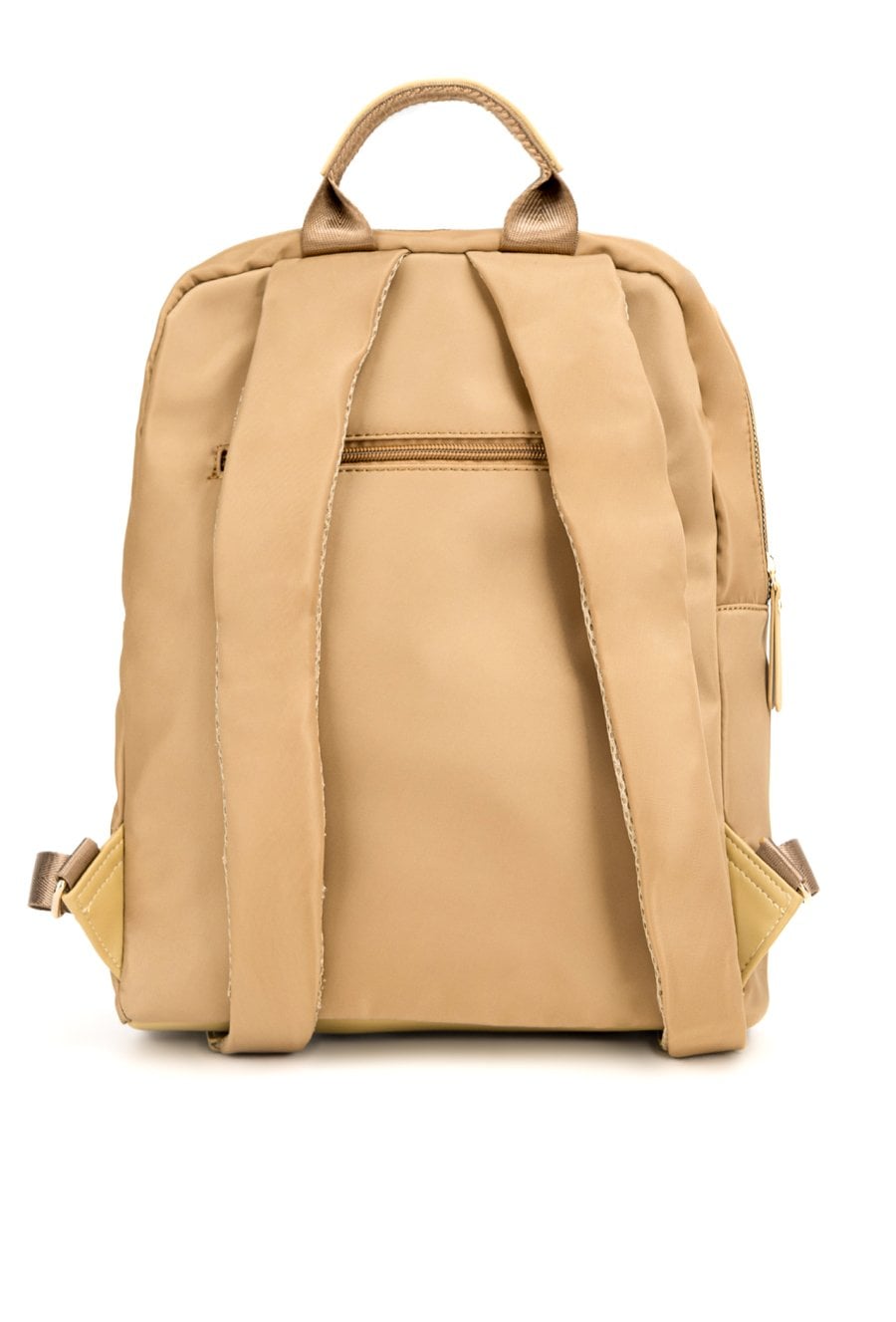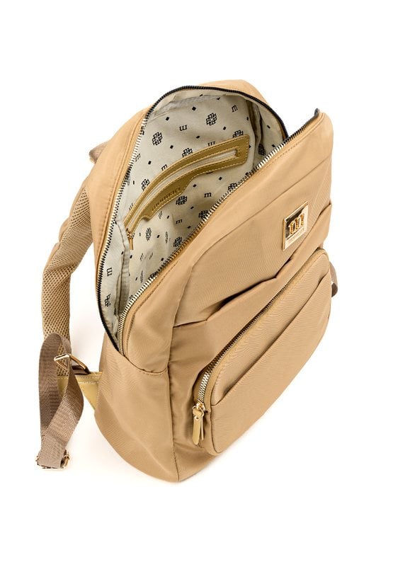 Tekstylny plecak damski o wymiarach 30 × 36,5 × 11 cm. Plecak jednokomorowy z jasną, logowaną podszewką oraz dodatkowymi kieszonkami na drobiazgi. Plecak zawieszony na wygodnej rączce i regulowanych paskach, co zapewnia komfort noszenia. Należy przechowywać w dołączonym woreczku.