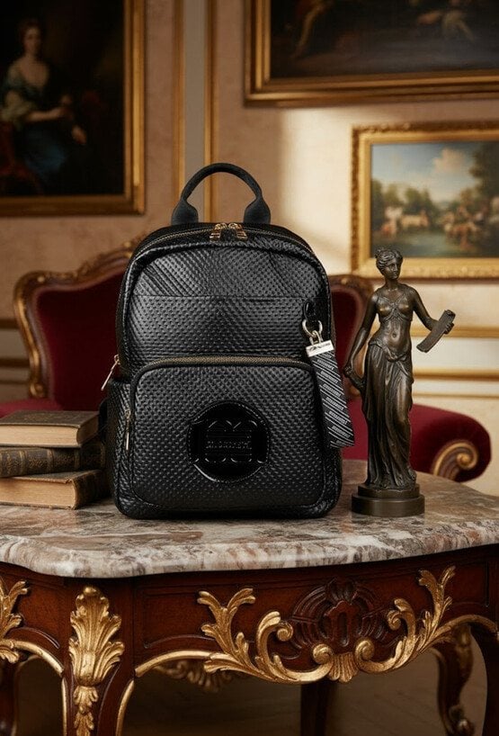 Wodoodporny plecak damski z ozdobną tasiemką na przednim panelu, jednokomorowy, z jasną logowaną podszewką i dodatkowymi kieszonkami wewnątrz, wyposażony w dwie kieszonki z przodu oraz praktyczne kieszenie boczne, łączący funkcjonalność z nowoczesnym designem. Należy przechowywać w dołączonym woreczku. Wymiary: 23,5 cm x 32 cm x 10 cm.