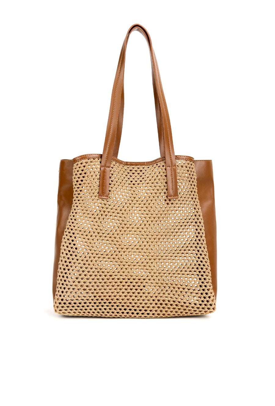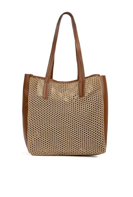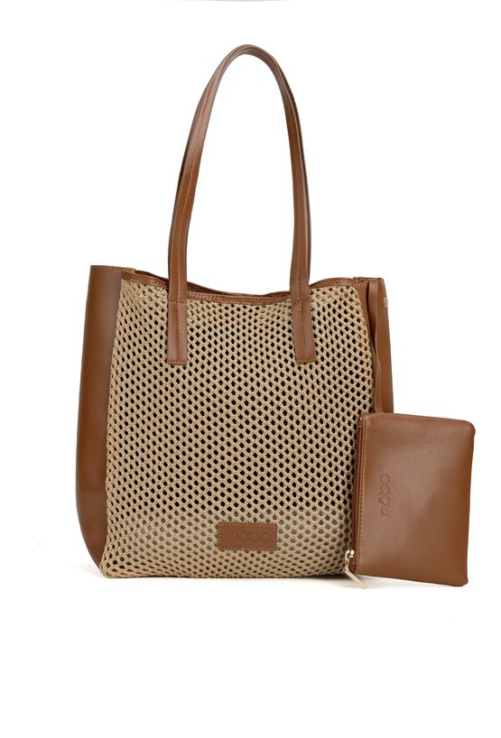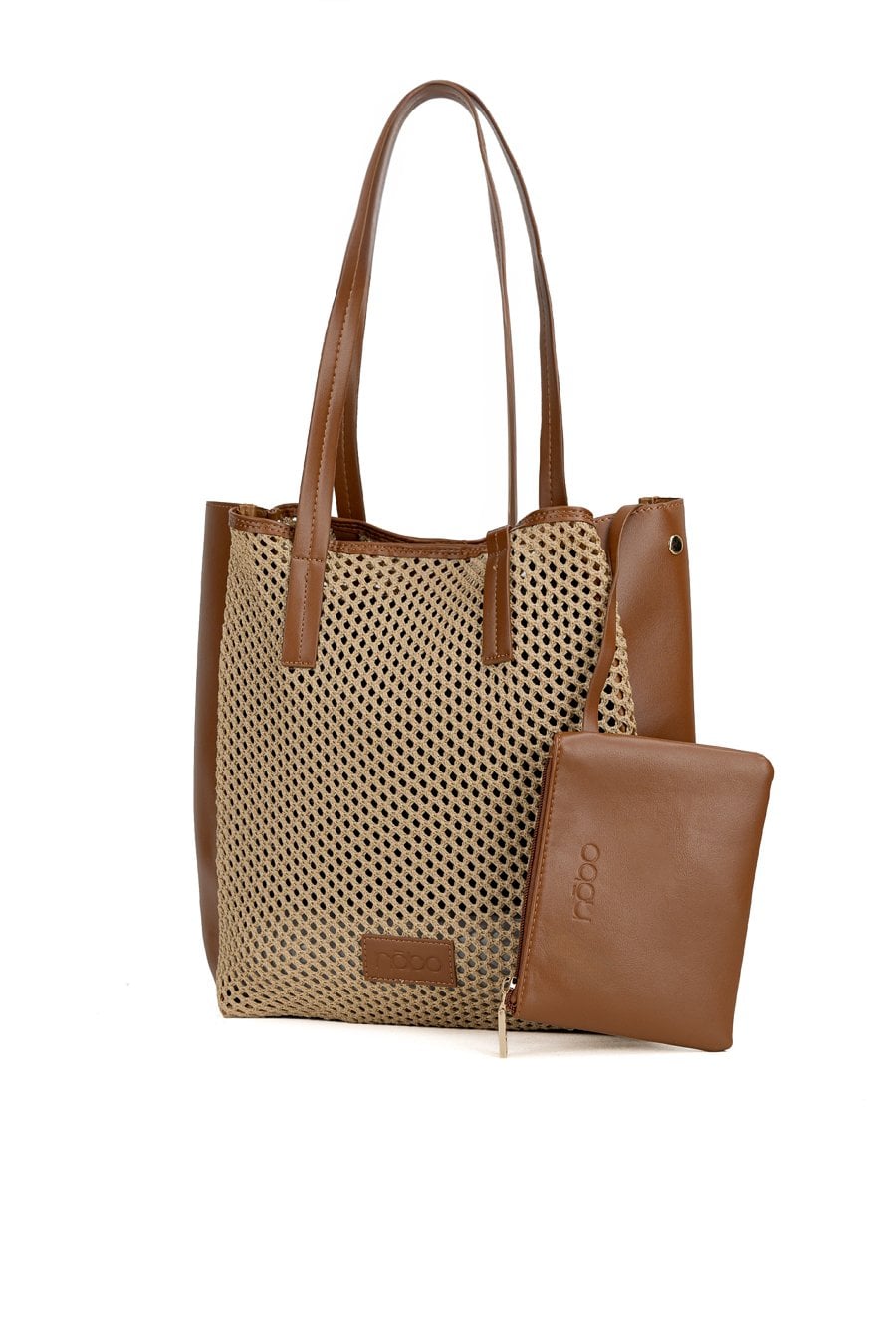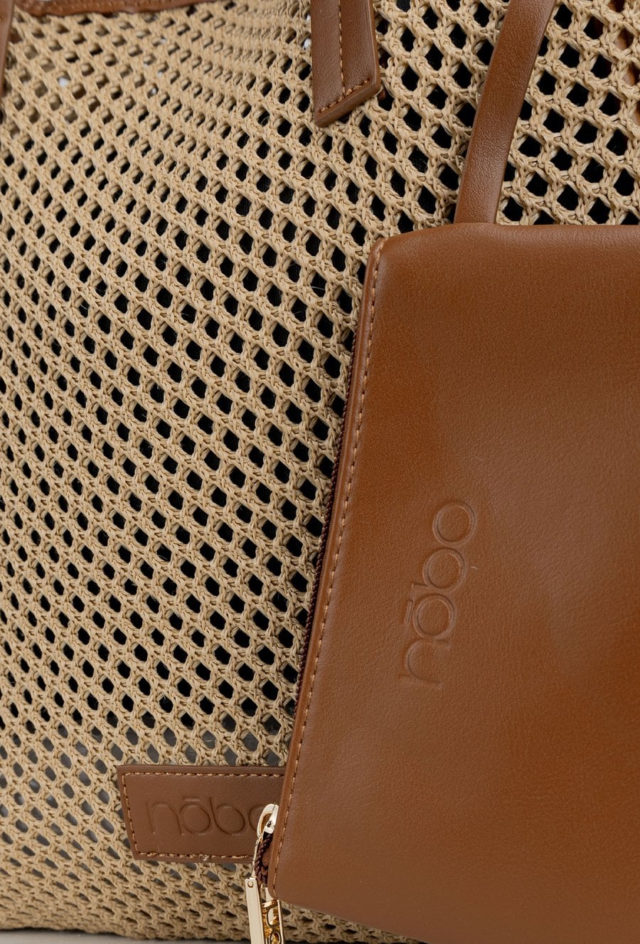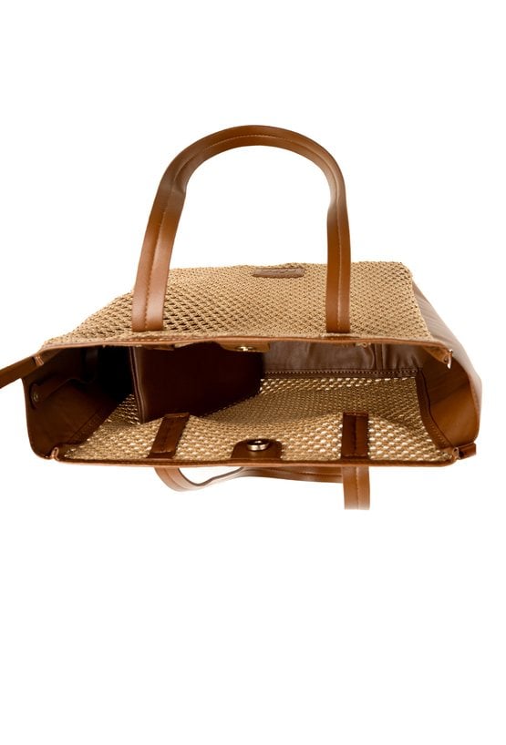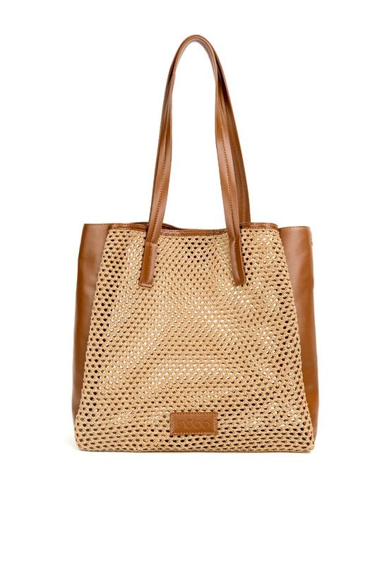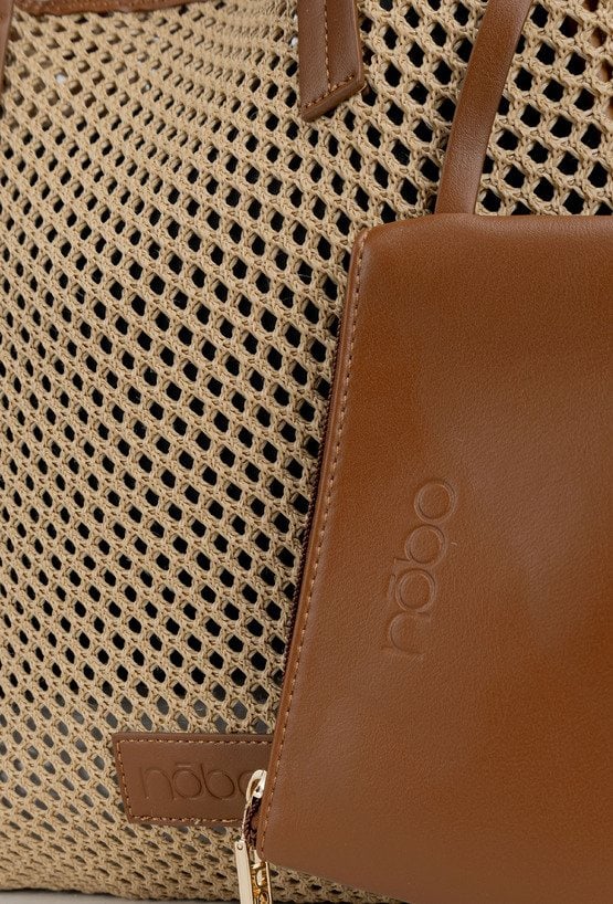 Ażurowy koszyk damski z dodatkową saszetką. Jednokomorowy model zapinany na napę, zawieszony na rączkach. Idealny wybór do letnich stylizacji. Torbę należy przechowywać w dołączonym woreczku. Wymiary: 33 cm x 34 cm x 11 cm.