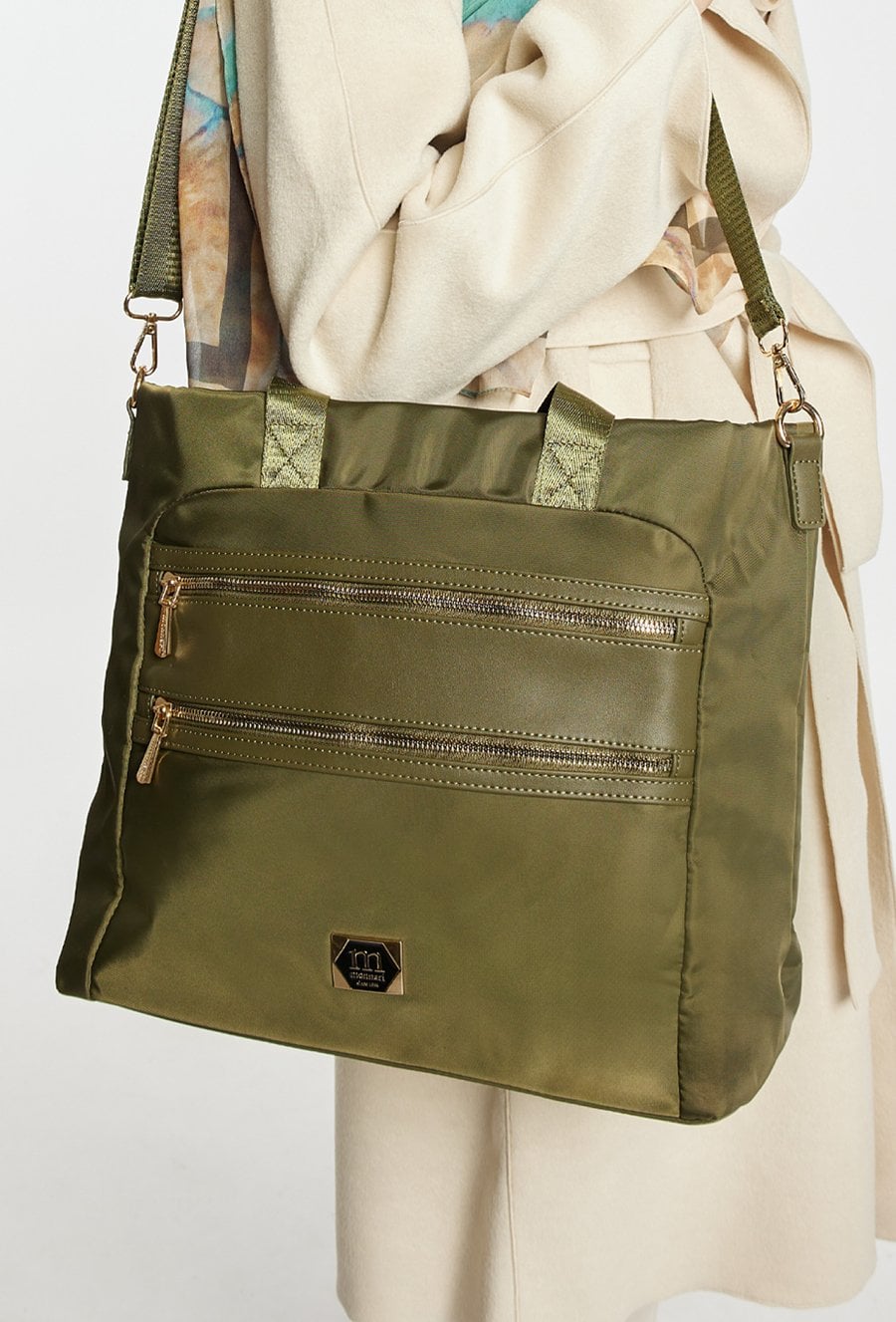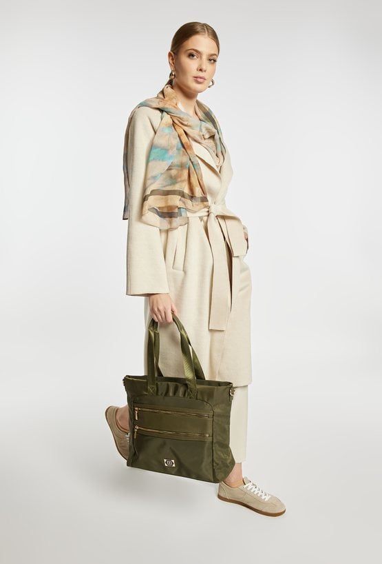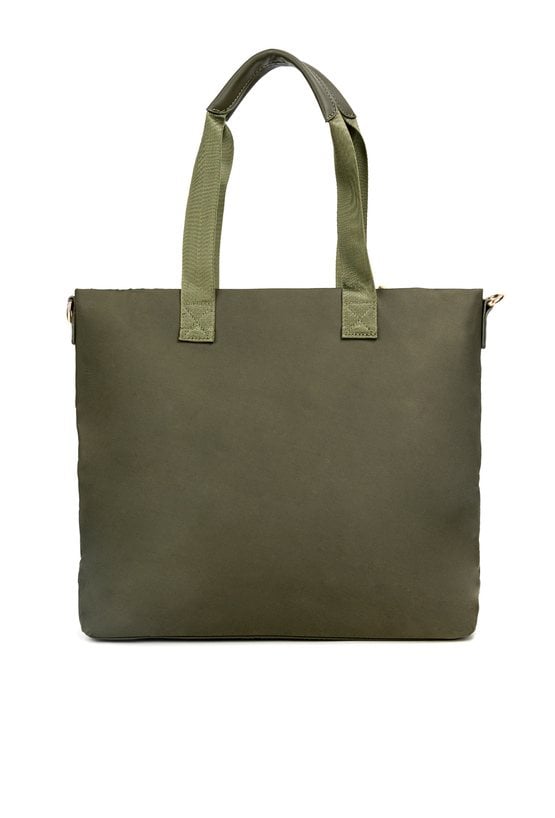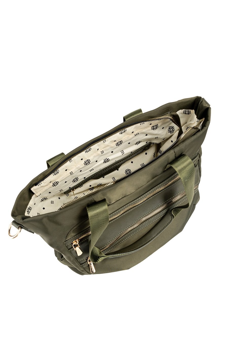 Tekstylna torba damska o wymiarach 43 × 34 × 12 cm. Torba jednokomorowa z jasną, logowaną podszewką oraz dodatkowymi kieszonkami na drobiazgi. Torba zawieszona na wygodnych rączkach, a w zestawie znajduje się także regulowany, odpinany pasek umożliwiający noszenie jej na różne sposoby. Idealna na co dzień. Torbę należy przechowywać w dołączonym woreczku.