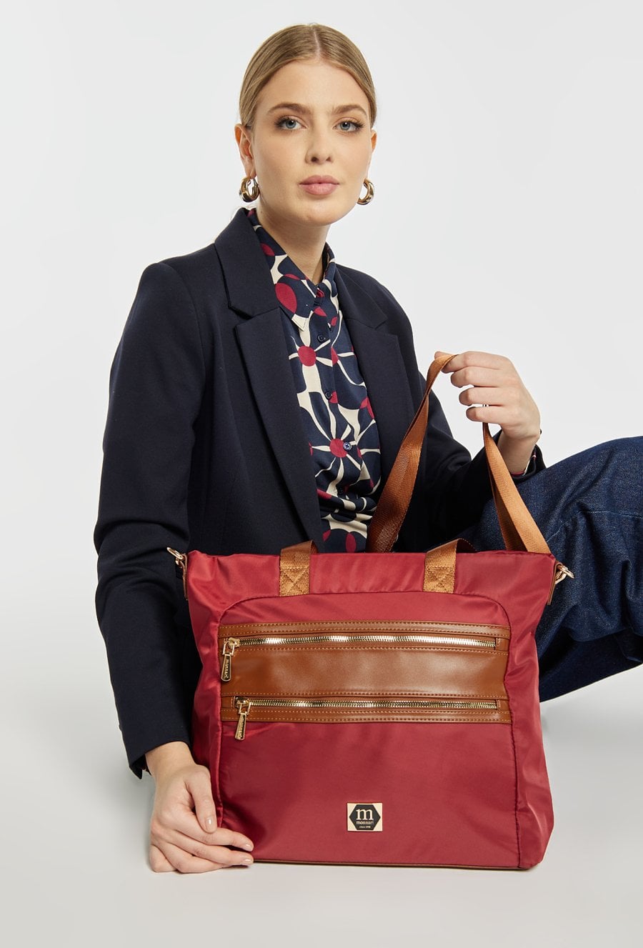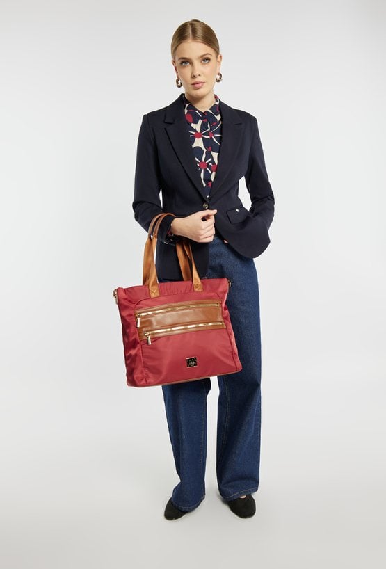 Tekstylna torba damska o wymiarach 43 × 34 × 12 cm. Torba jednokomorowa z jasną, logowaną podszewką oraz dodatkowymi kieszonkami na drobiazgi. Torba zawieszona na wygodnych rączkach, a w zestawie znajduje się także regulowany, odpinany pasek umożliwiający noszenie jej na różne sposoby. Idealna na co dzień. Torbę należy przechowywać w dołączonym woreczku.
