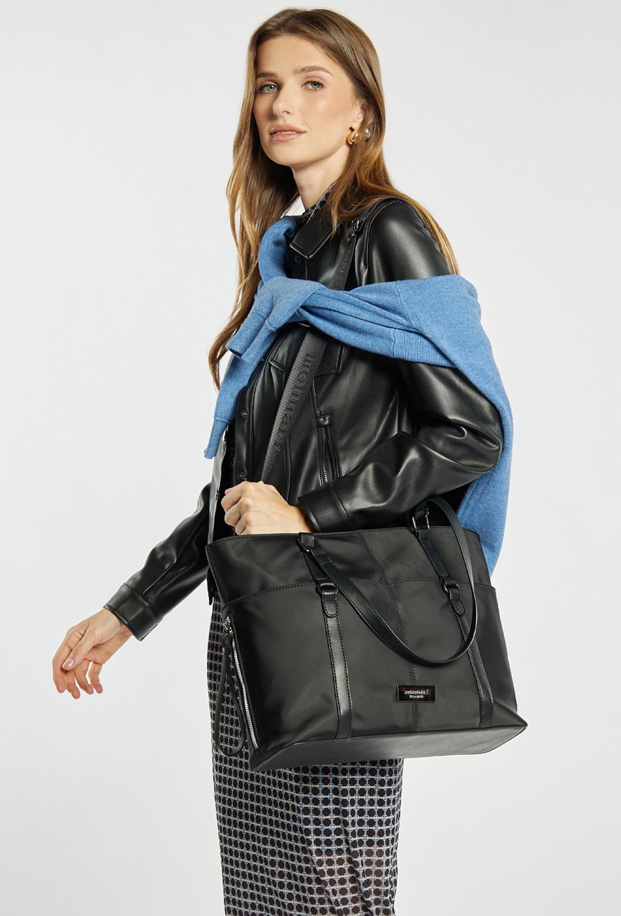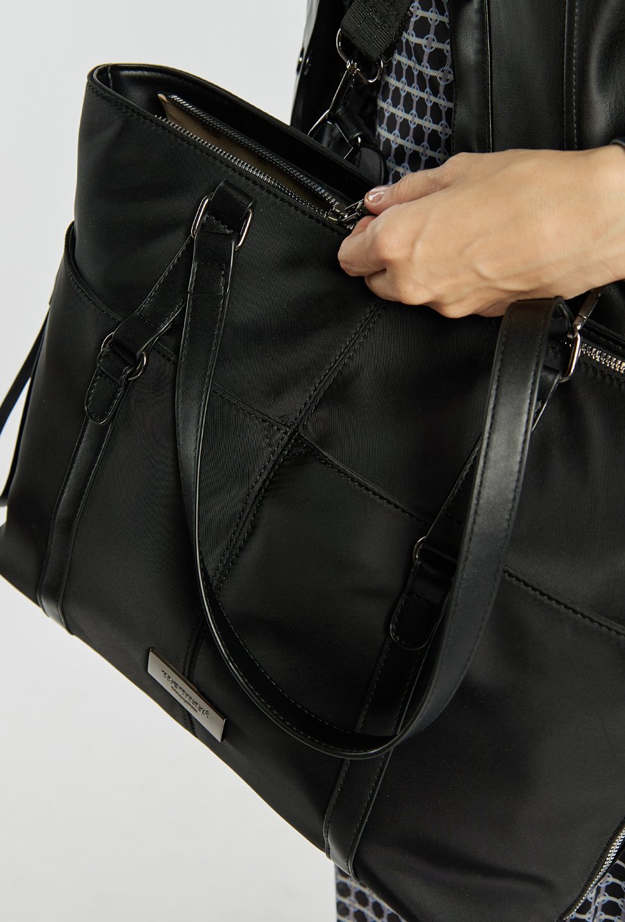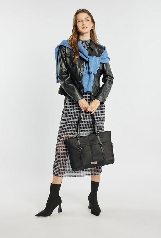 Duża torebka damska o nowoczesnym designie, ozdobiona dekoracyjnymi suwakami, które nadają jej modowego charakteru. Model jednokomorowy, wykończony jasną, logowaną podszewką i wyposażony w dodatkowe kieszonki, ułatwiające organizację niezbędnych drobiazgów. Zawieszona na wygodnych rączkach, z dodatkowym regulowanym paskiem w zestawie – idealna do noszenia na co dzień, zarówno do pracy, jak i w miejskich stylizacjach. Torebkę należy przechowywać w dołączonym woreczku. Wymiary: 42 cm x 29 cm x 14 cm