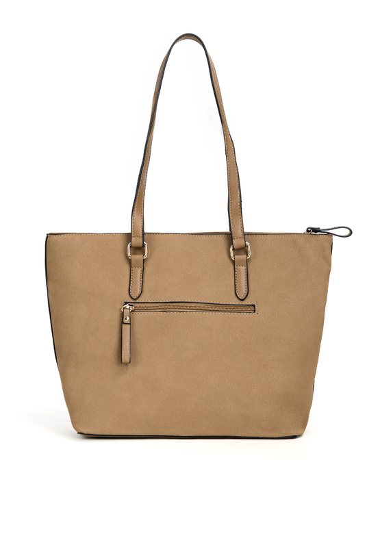Torba damska typu shopper o wymiarach 39 × 28,5 × 11 cm to klasyczny, pojemny model idealny na co dzień, do pracy i na zakupy. Torba jest jednokomorowa, ma jasną, logowaną podszewkę oraz dodatkowe kieszonki na drobiazgi, które ułatwiają organizację wnętrza. Torba na wygodnych rączkach zapewnia komfort noszenia i pasuje do wielu stylizacji. Torbę należy przechowywać w dołączonym woreczku.