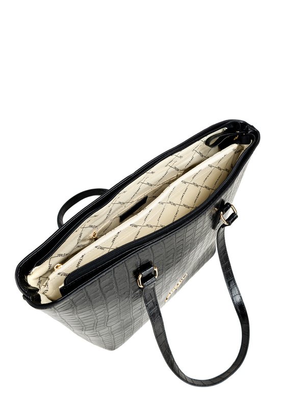 Torba damska typu shopper o wymiarach 39 × 28,5 × 11 cm to klasyczny, pojemny model idealny na co dzień, do pracy i na zakupy. Torba jest jednokomorowa, ma jasną, logowaną podszewkę oraz dodatkowe kieszonki na drobiazgi, które ułatwiają organizację wnętrza. Torba na wygodnych rączkach zapewnia komfort noszenia i pasuje do wielu stylizacji. Torbę należy przechowywać w dołączonym woreczku.