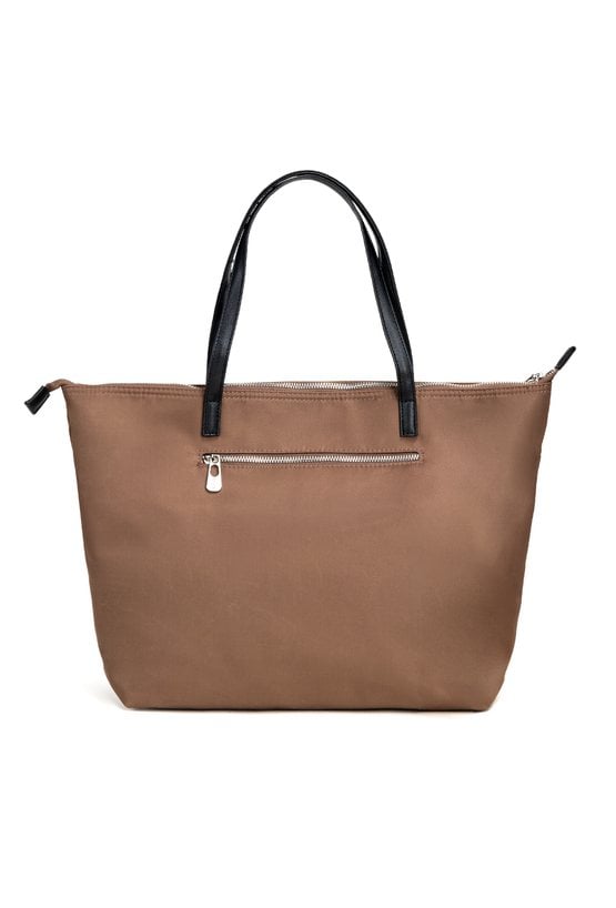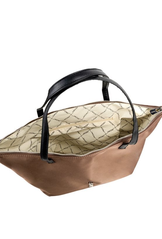 Tekstylna torba damska o wymiarach 45 × 30,5 × 14 cm to pojemny i wygodny wybór na co dzień. Torba jest jednokomorowa, ma jasną, logowaną podszewkę oraz dodatkowe kieszonki na drobiazgi, które ułatwiają organizację wnętrza. Torba zawieszona na rączkach zapewnia komfort noszenia. Torbę należy przechowywać w dołączonym woreczku.