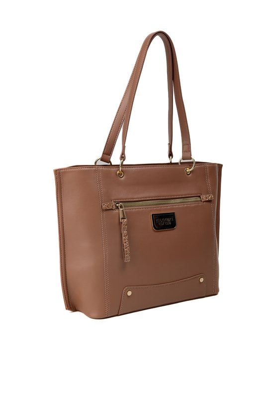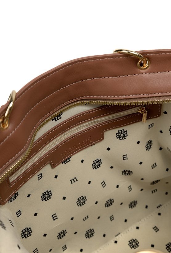 Torba damska typu shopper o wymiarach 41,5 cm x 26 cm x 10 cm. Model jednokomorowy, z jasną, logowaną podszewką oraz dodatkowymi kieszonkami na drobiazgi, które ułatwiają organizację. Zawieszona na rączkach, łączy w sobie elegancję i funkcjonalność. Torbę należy przechowywać w załączonym woreczku ochronnym.