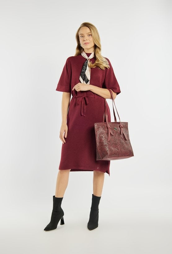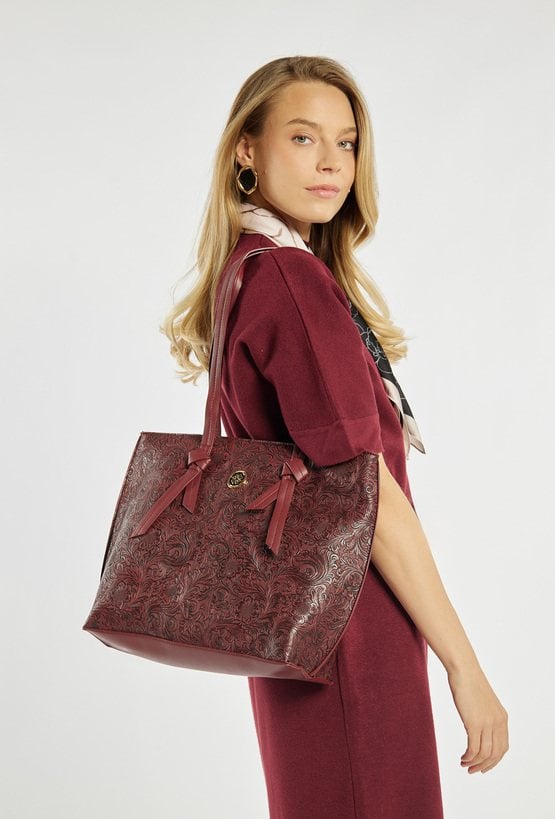 Duża, stylowa torba damska z oryginalnym wzorem. Torba wyposażona w jedną przestronną komorę z jasną, logowaną podszewką oraz praktycznymi kieszonkami ułatwiającymi organizację drobiazgów. Model zawieszony na wygodnych rączkach do noszenia na ramieniu, zapewnia komfort w codziennym użytkowaniu. Całość zapinana na suwak. Torbę należy przechowywać w dołączonym woreczku. Wymiary: 44 cm x 31 cm x 13 cm.
