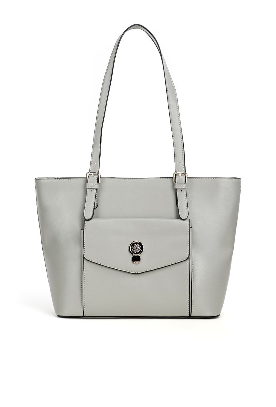 Duża torba damska o wymiarach 41 × 26,5 × 13 cm to praktyczny i pojemny model na co dzień. Torba jest jednokomorowa, ma jasną, logowaną podszewkę oraz dodatkowe kieszonki na drobiazgi, w tym kieszonkę na środku zapinaną na suwak, która ułatwia organizację. Torba zawieszona na regulowanych rączkach zapewnia wygodę noszenia, a dodatkowym atutem jest przednia kieszonka z klapą, idealna na rzeczy, które chcesz mieć pod ręką. Torbę należy przechowywać w dołączonym woreczku.