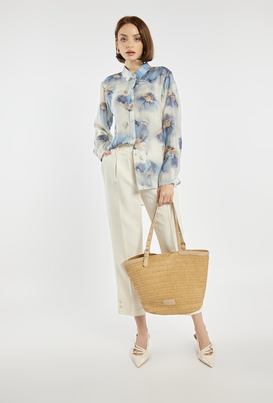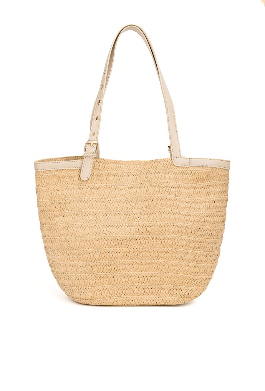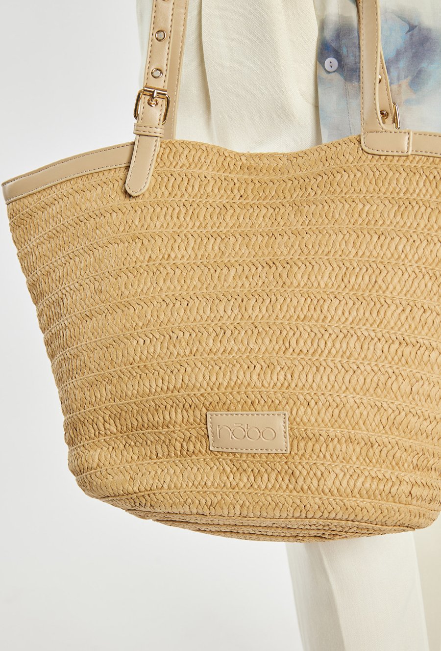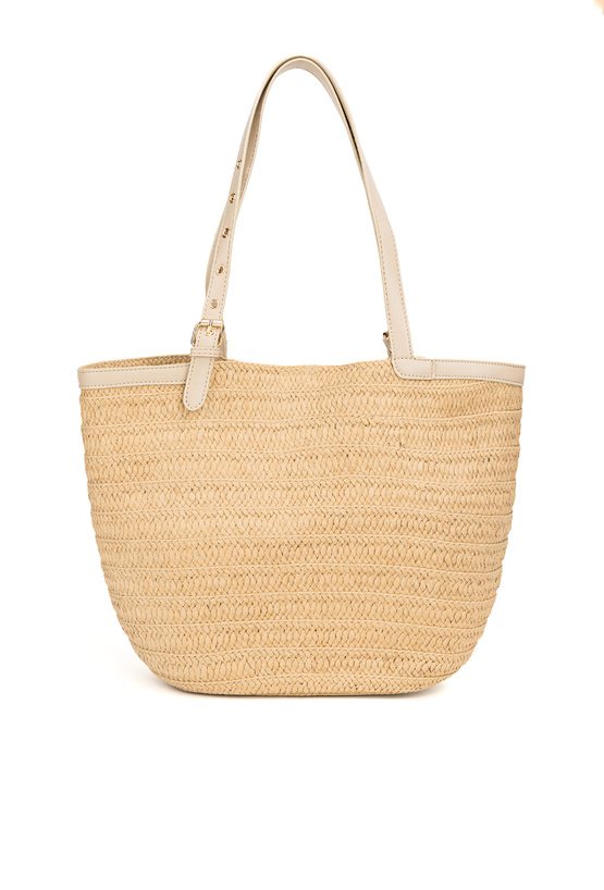 Damska torba typu shopper z plecionką. Jednokomorowy model zapinany na napę, zawieszony na regulowanych rączkach. Dodatkowym atutem jest saszetka zapinana na suwak, idealna na najpotrzebniejsze drobiazgi. Torbę należy przechowywać w dołączonym woreczku. Wymiary: 39 × 30,5 × 12 cm.