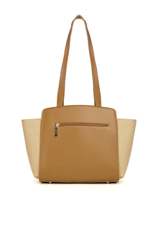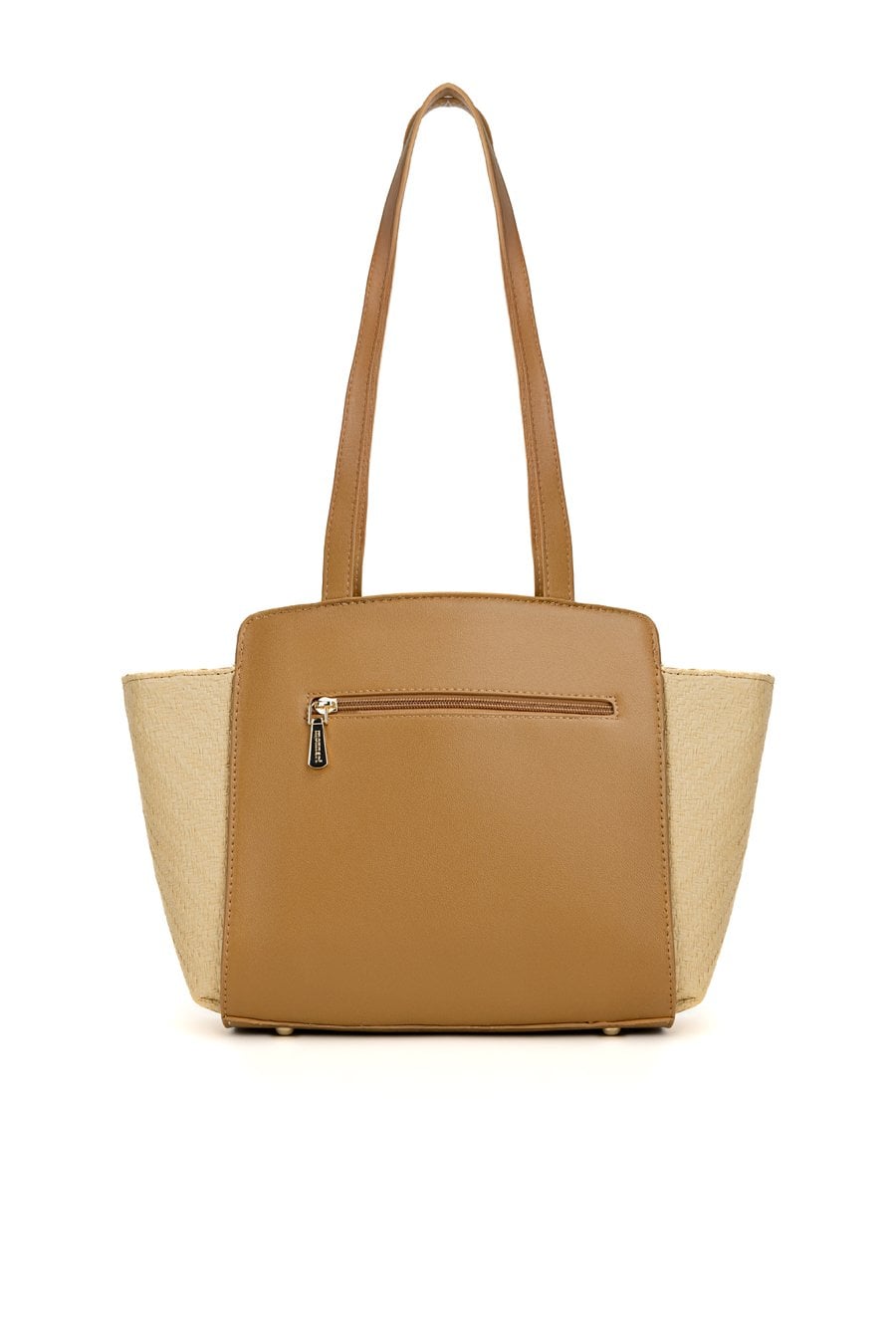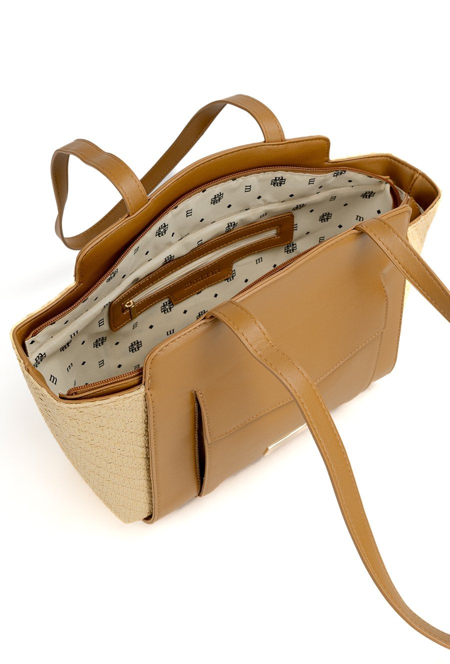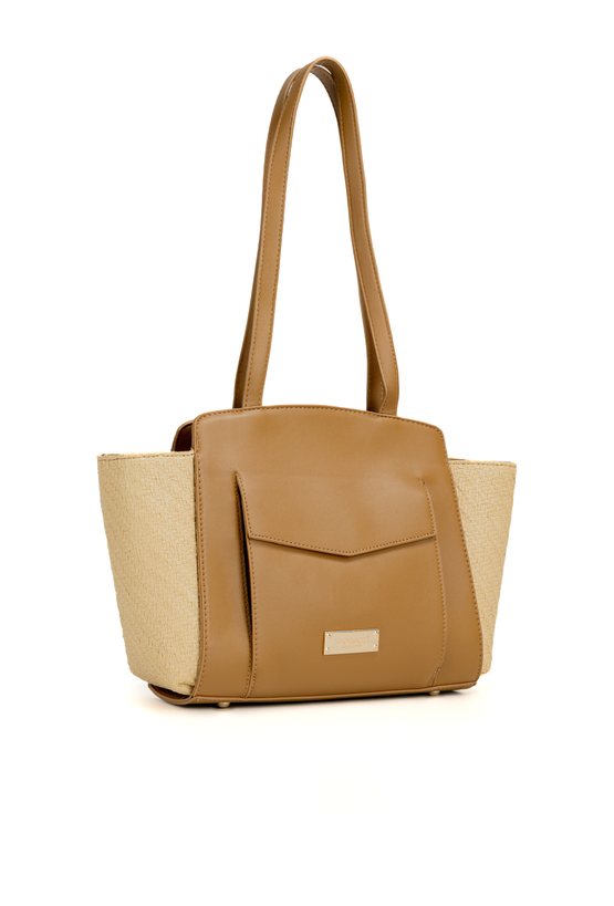Duża torba damska typu shopper i koszyk z dodatkową plecionką to pojemny, stylowy model na co dzień. Torba jest jednokomorowa, ma jasną, logowaną podszewkę oraz dodatkowe kieszonki na drobiazgi, które ułatwiają organizację. Torba zawieszona na rączkach, a z przodu ma praktyczną małą kieszonkę zapinaną na klapę z napą, idealną na rzeczy, które chcesz mieć pod ręką. Torbę należy przechowywać w dołączonym woreczku. Wymiary: 42 cm x 21 cm x 9 cm.