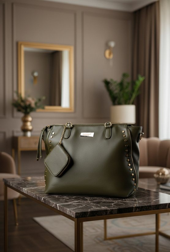 Duża torba damska o wyrazistym charakterze, ozdobiona dekoracyjnymi ćwiekami, które dodają jej nowoczesnego stylu. Model jednokomorowy z jasną, logowaną podszewką, zawieszony na wygodnych rączkach. W zestawie znajduje się regulowany pasek umożliwiający noszenie torby na ramieniu. Dodatkowym atutem jest praktyczna, odczepiana saszetka. Torebkę należy przechowywać w dołączonym woreczku. Wymiary: 44 cm x 30,5 cm x 14 cm.