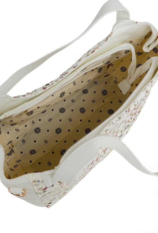 Torba damska typu shopper o wymiarach 41 × 25,5 × 12 cm to pojemny i stylowy model na co dzień. Torba jest jednokomorowa, ma jasną, logowaną podszewkę oraz dodatkowe kieszonki na drobiazgi, które ułatwiają organizację. Torba zawieszona na wygodnych rączkach, w zestawie ma odpinany, regulowany pasek, a całość zdobi modny wzór.