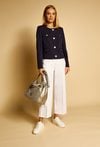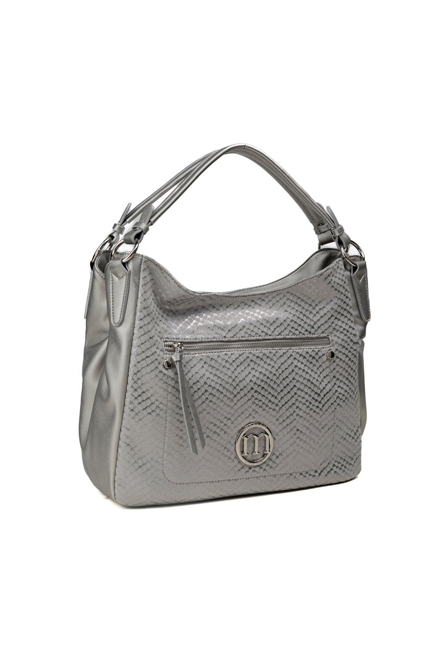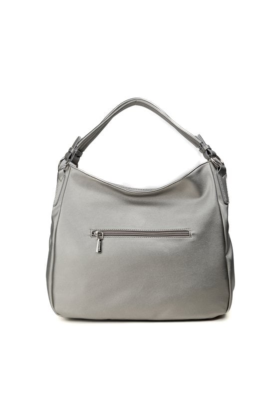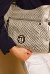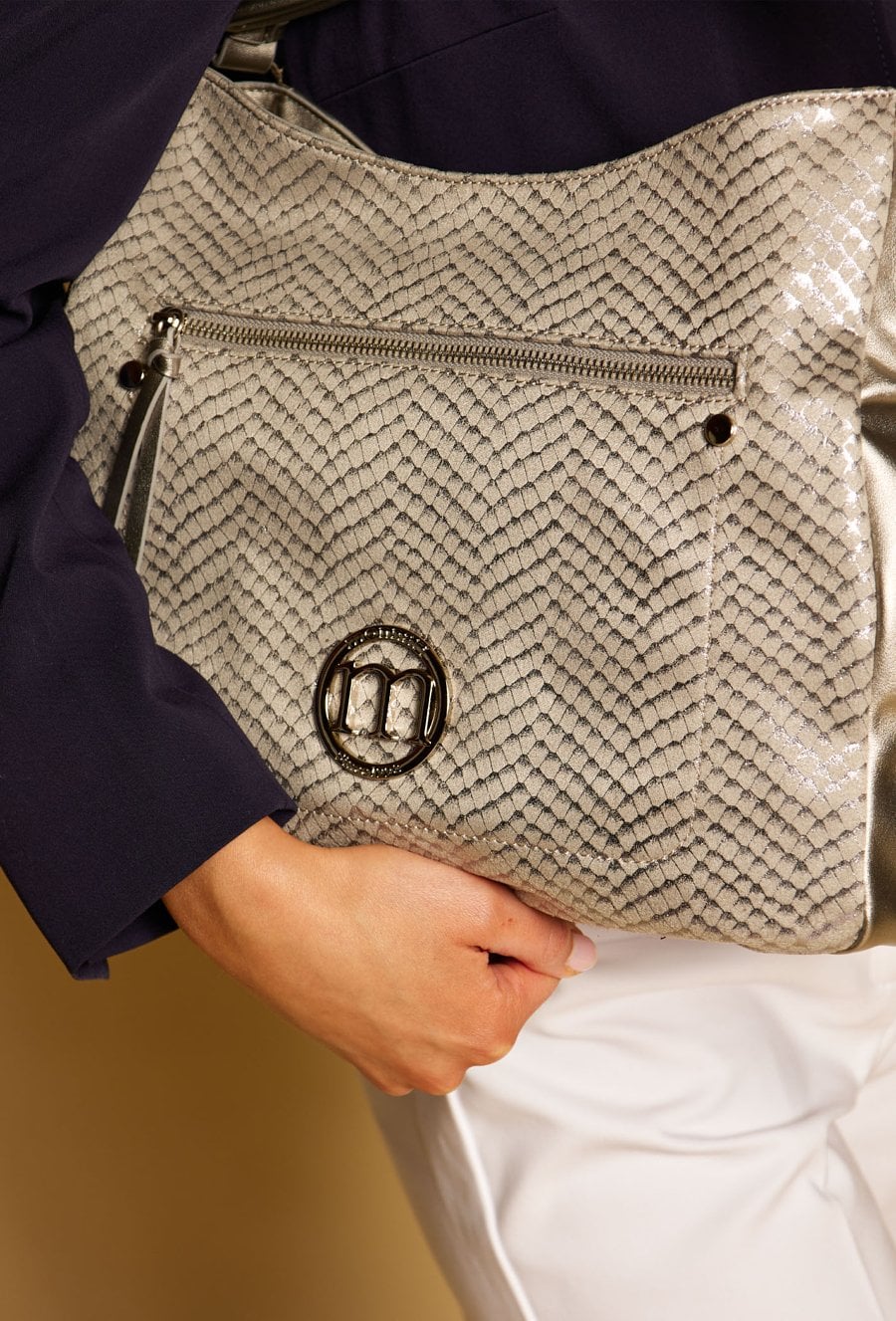 Damska torba typu worek z dekoracyjnym wzorem na przednim panelu. Jednokomorowe wnętrze z jasną, logowaną podszewką wyposażono w dodatkowe kieszonki na drobiazgi. Torba zawieszona na rączkach. Wymiary: 36 × 26 × 14 cm. Torbę należy przechowywać w dołączonym woreczku.