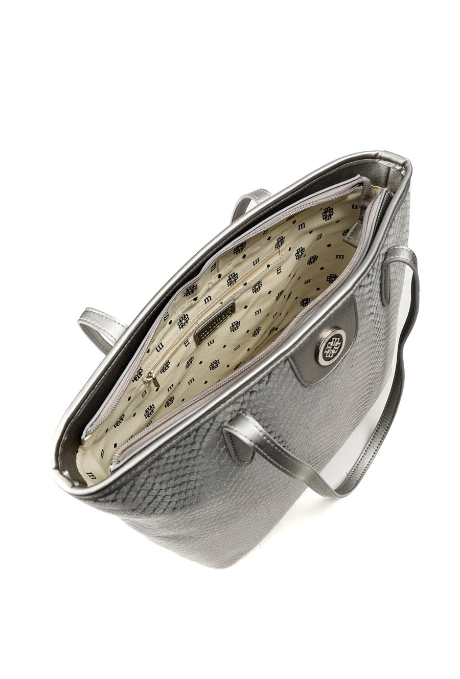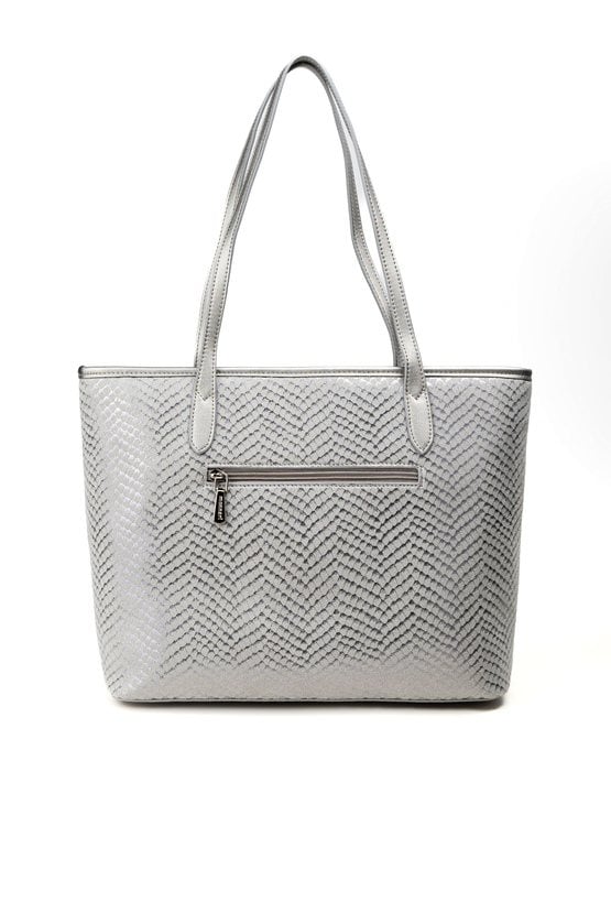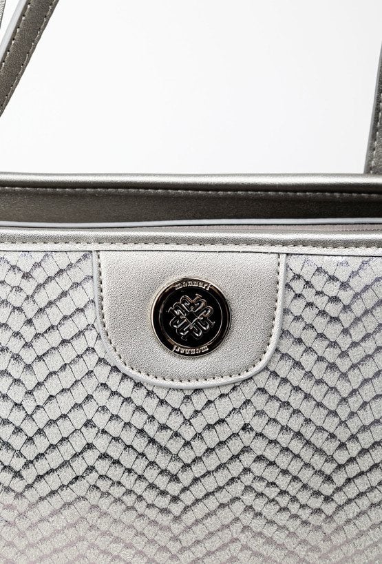 Duża torba damska o wymiarach: 40 cm x 27,5 cm x 12 cm. Torba jednokomorowa o jasnej, logowanej podszewce z dodatkowymi kieszonkami na drobiazgi. Torba zawieszona na rączkach, wygodna i pojemna – idealna na co dzień. Atutem modelu jest efektowny, wzorzysty panel, który nadaje jej wyjątkowego stylu. Torbę należy przechowywać w załączonym woreczku.