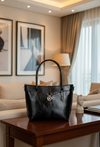 Duża torba damska o klasycznym fasonie, ozdobiona elegancką zawieszką z logo marki Monnari. Jednokomorowe wnętrze zostało wykończone jasną, logowaną podszewką i wyposażone w dodatkowe kieszonki, które ułatwiają organizację niezbędnych drobiazgów. Model zawieszony na wygodnych rączkach, a w zestawie znajduje się także regulowany pasek, umożliwiający noszenie torby na ramieniu. Torebkę należy przechowywać w dołączonym woreczku. Wymiary: 38 cm x 27 cm x 9 cm.