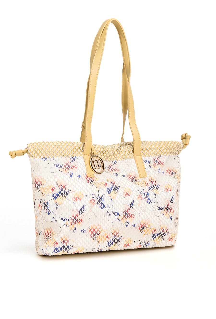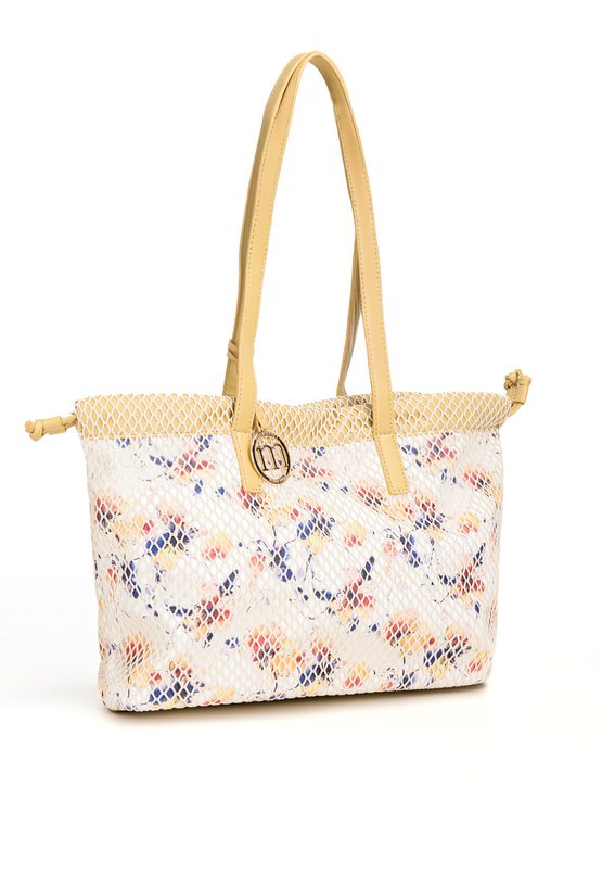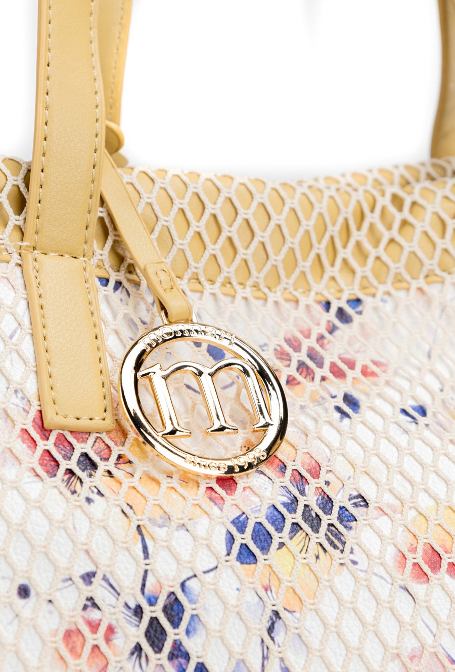 Duży shopper damski o wymiarach 41 × 27 × 10 cm to pojemna i stylowa propozycja na co dzień. Torba jest jednokomorowa, ma jasną, logowaną podszewkę oraz dodatkowe kieszonki na drobiazgi, które ułatwiają organizację wnętrza. Torba zawieszona na rączkach z elementem logo marki Monnari wyróżnia się kwiatowym wzorem przykrytym siateczką, nadającym całości oryginalnego charakteru.