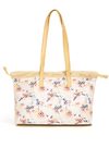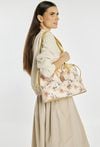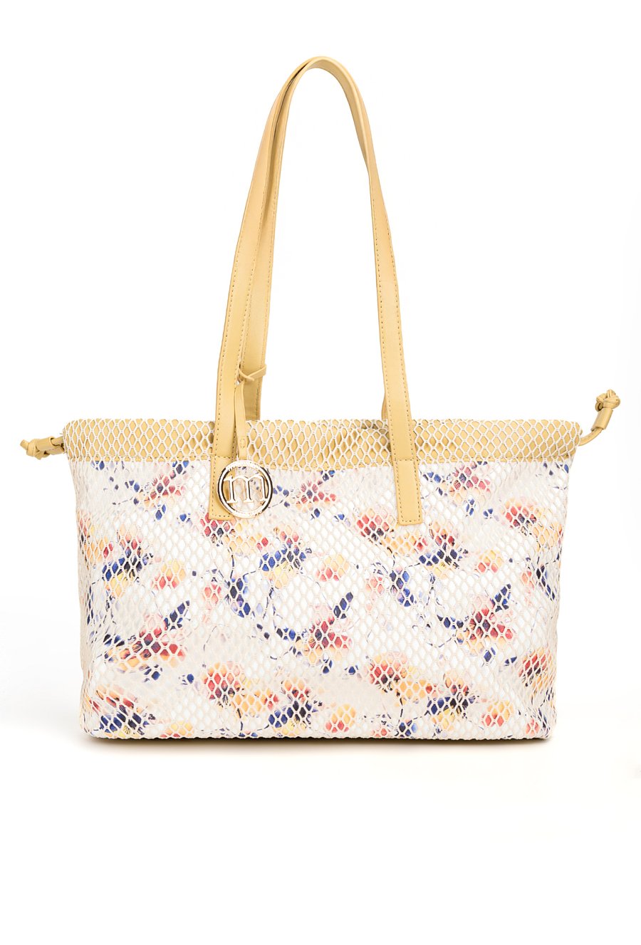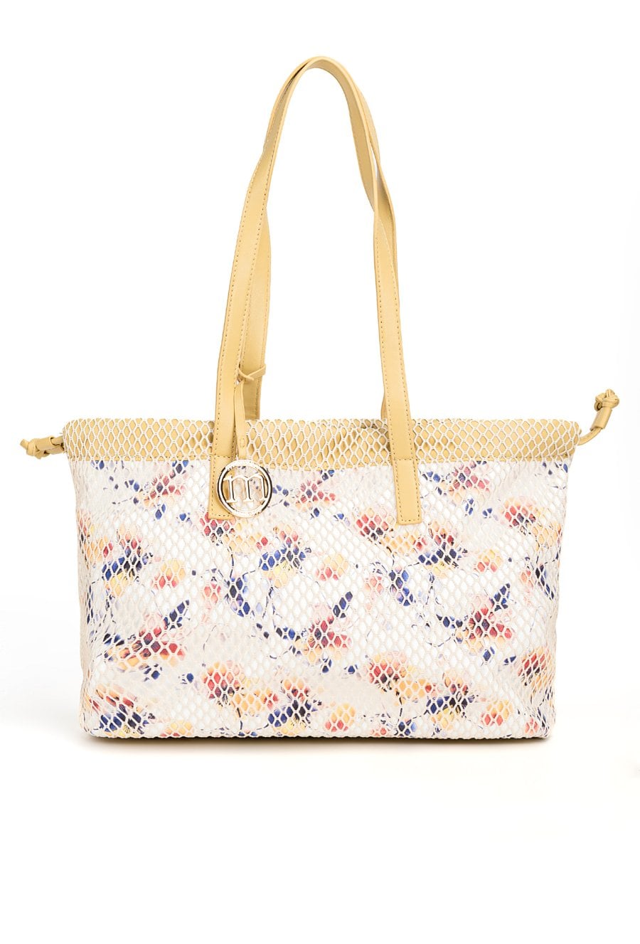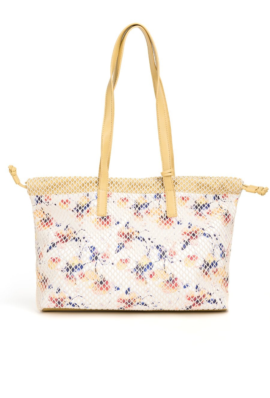Duży shopper damski o wymiarach 41 × 27 × 10 cm to pojemna i stylowa propozycja na co dzień. Torba jest jednokomorowa, ma jasną, logowaną podszewkę oraz dodatkowe kieszonki na drobiazgi, które ułatwiają organizację wnętrza. Torba zawieszona na rączkach z elementem logo marki Monnari wyróżnia się kwiatowym wzorem przykrytym siateczką, nadającym całości oryginalnego charakteru.