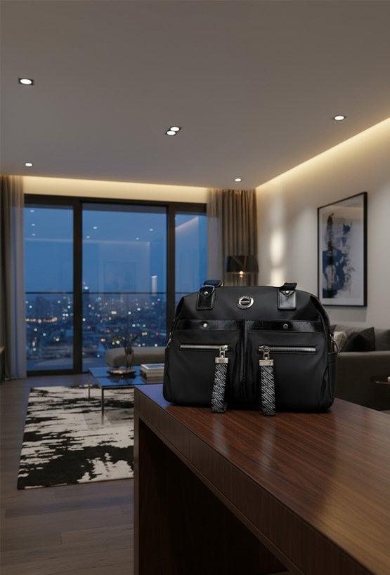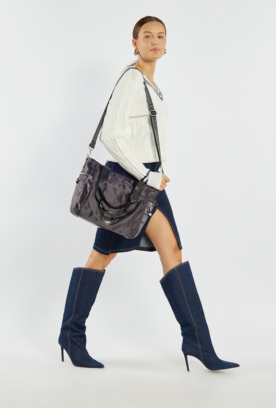 Shopper damski o wymiarach 40 × 28 × 15 cm to pojemna i stylowa torba idealna na co dzień. Jednokomorowe wnętrze z jasną, logowaną podszewką oraz dodatkowymi kieszonkami pozwala na wygodne przechowywanie najpotrzebniejszych rzeczy. Model zawieszony jest na rączkach, a w zestawie znajduje się również regulowany pasek do noszenia na ramieniu. Dodatkowym atutem torby są liczne kieszenie umieszczone z przodu, z boku i z tyłu, które podnoszą jej funkcjonalność. Należy przechowywać w dołączonym woreczku.