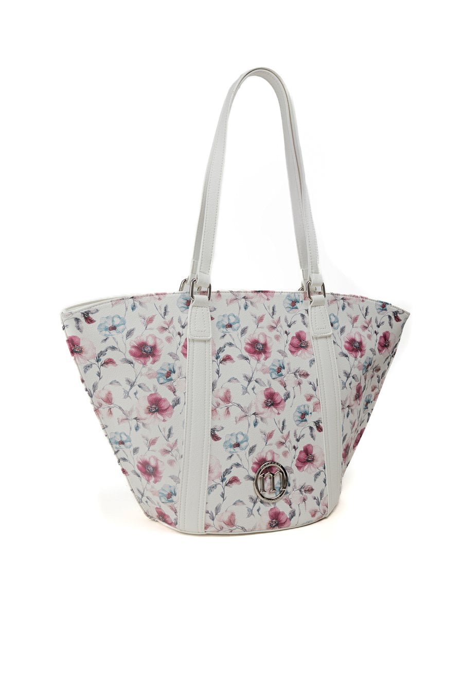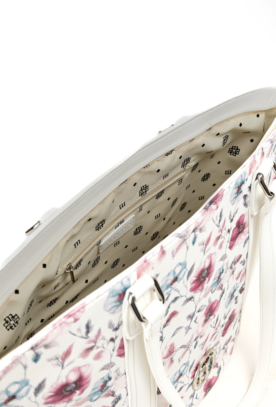 Shopper damski z kwiatowym wzorem, idealny na wiosenne dni. Torba jednokomorowa, z jasną, logowaną podszewką oraz dodatkowymi kieszonkami na drobiazgi. Torba zawieszona na rączkach, wygodna i pojemna. Model o wymiarach 46,5 cm x 31 cm x 10 cm doskonale sprawdzi się na co dzień. Torbę należy przechowywać w załączonym woreczku.