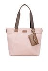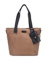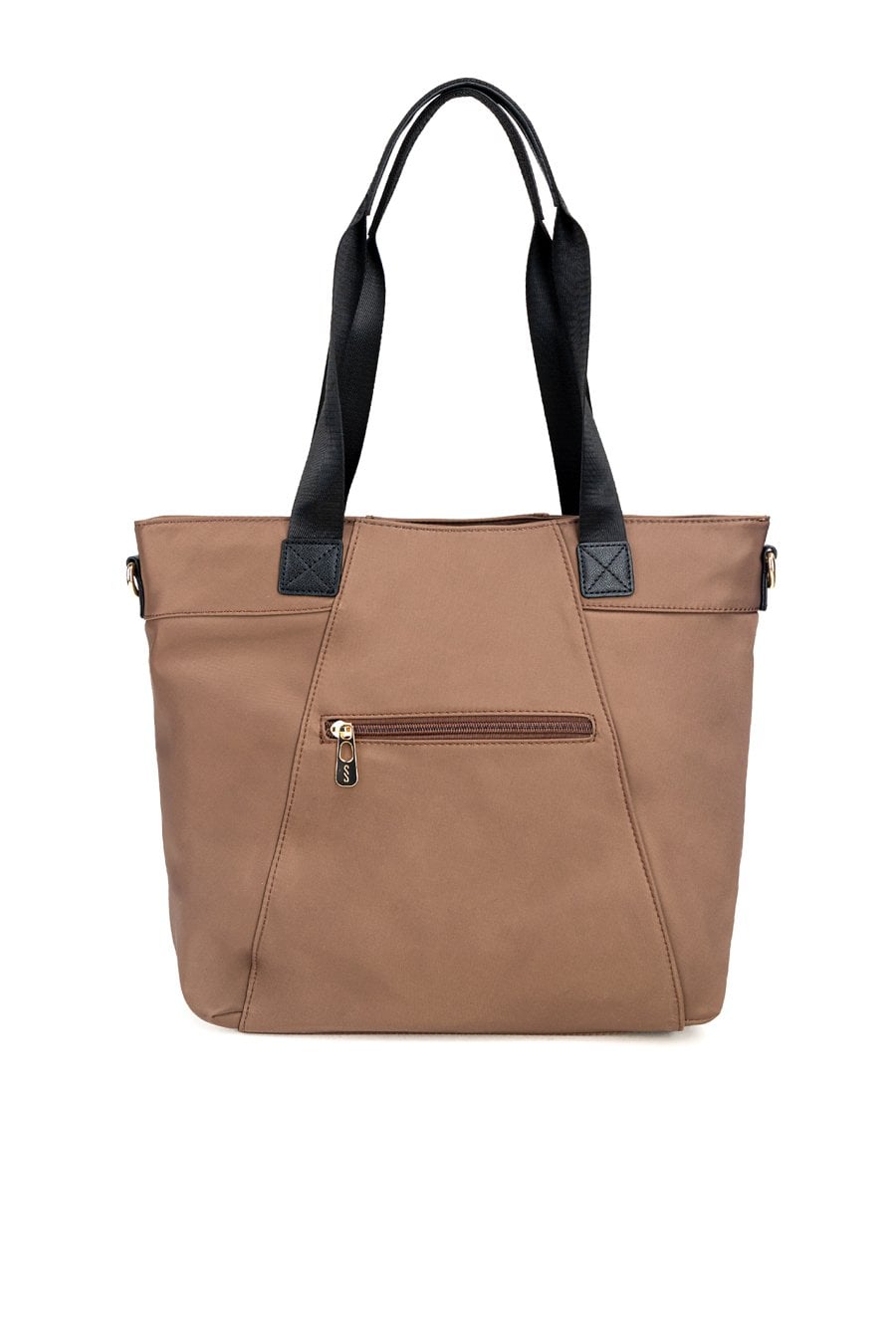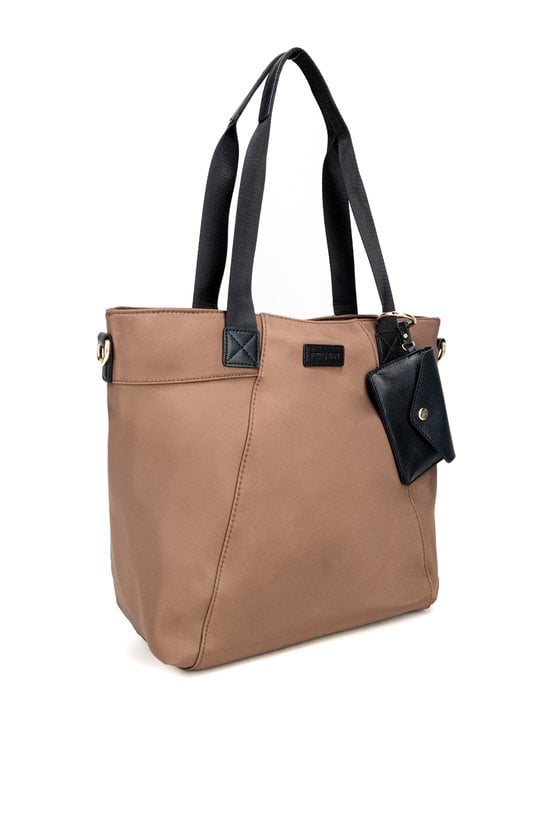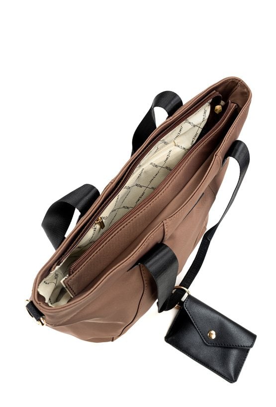 Torba tekstylna damska o wymiarach 40 × 32,5 × 13 cm, jednokomorowa, z jasną, logowaną podszewką oraz praktycznymi kieszonkami na drobiazgi. Torba posiada wygodne rączki z doczepioną małą saszetką, a w zestawie znajduje się regulowany pasek do noszenia na ramieniu lub przez ramię. Torbę należy przechowywać w załączonym woreczku.