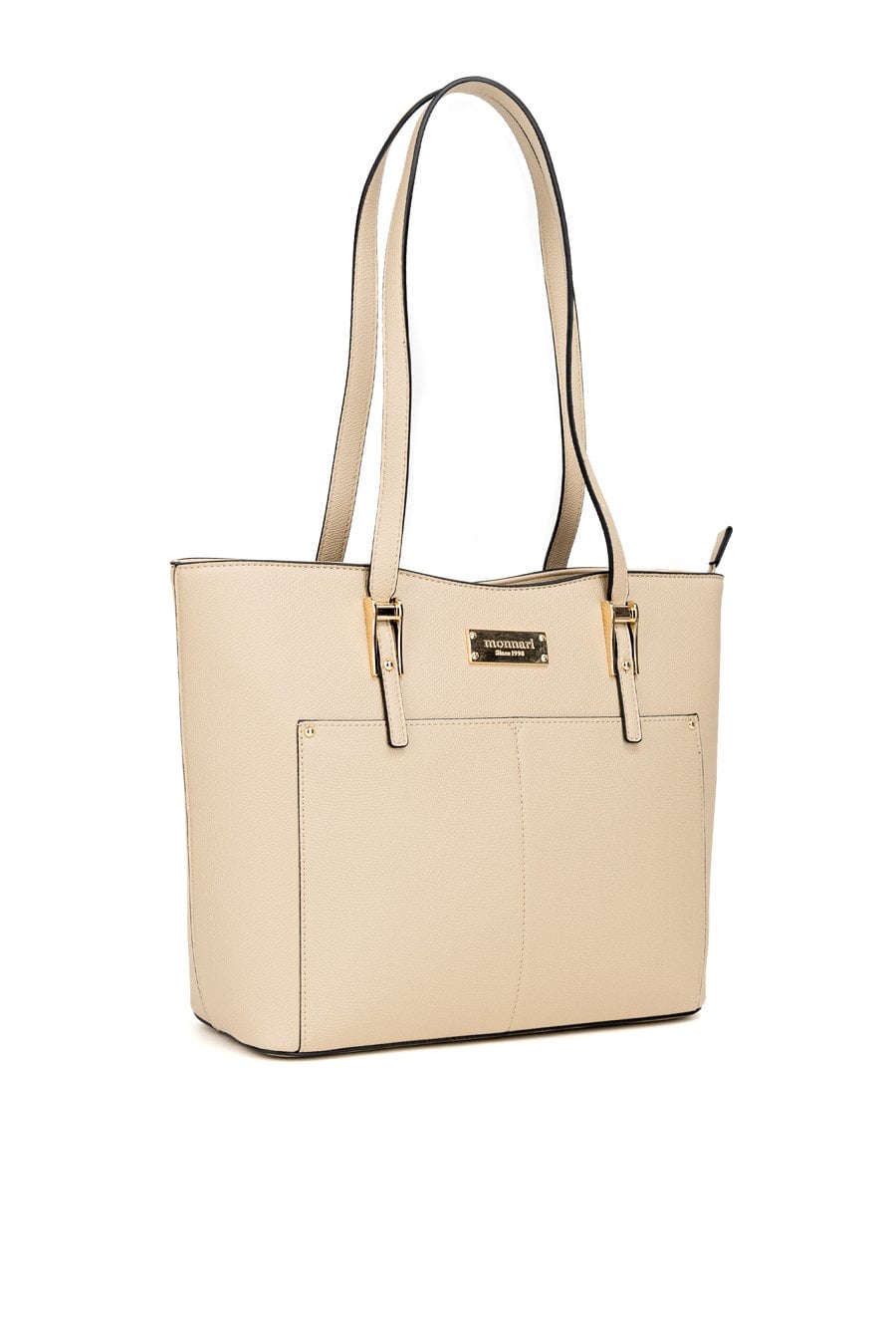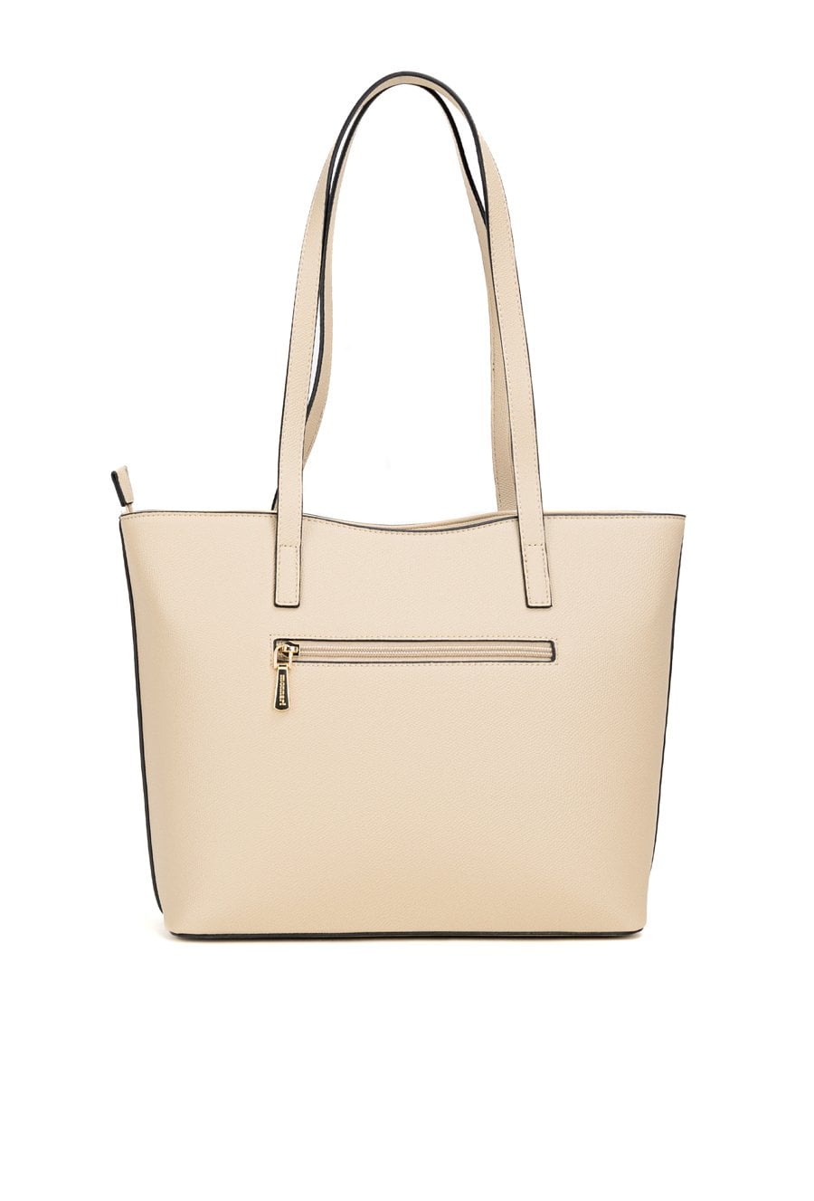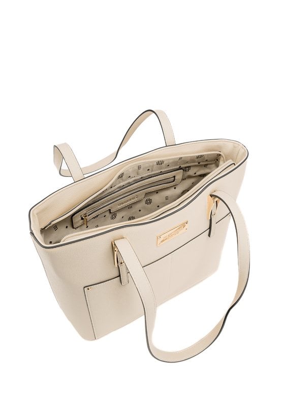 Torba damska o wymiarach 35 × 26 × 13 cm to wygodny wybór na co dzień- do pracy, na zakupy i na spotkania. Torba jest jednokomorowa, ma jasną, logowaną podszewkę oraz dodatkowe kieszonki na drobiazgi. Torba zawieszona na rączkach zapewnia komfort noszenia w dłoni lub na przedramieniu. Torbę należy przechowywać w dołączonym woreczku.