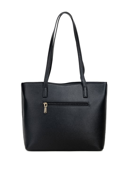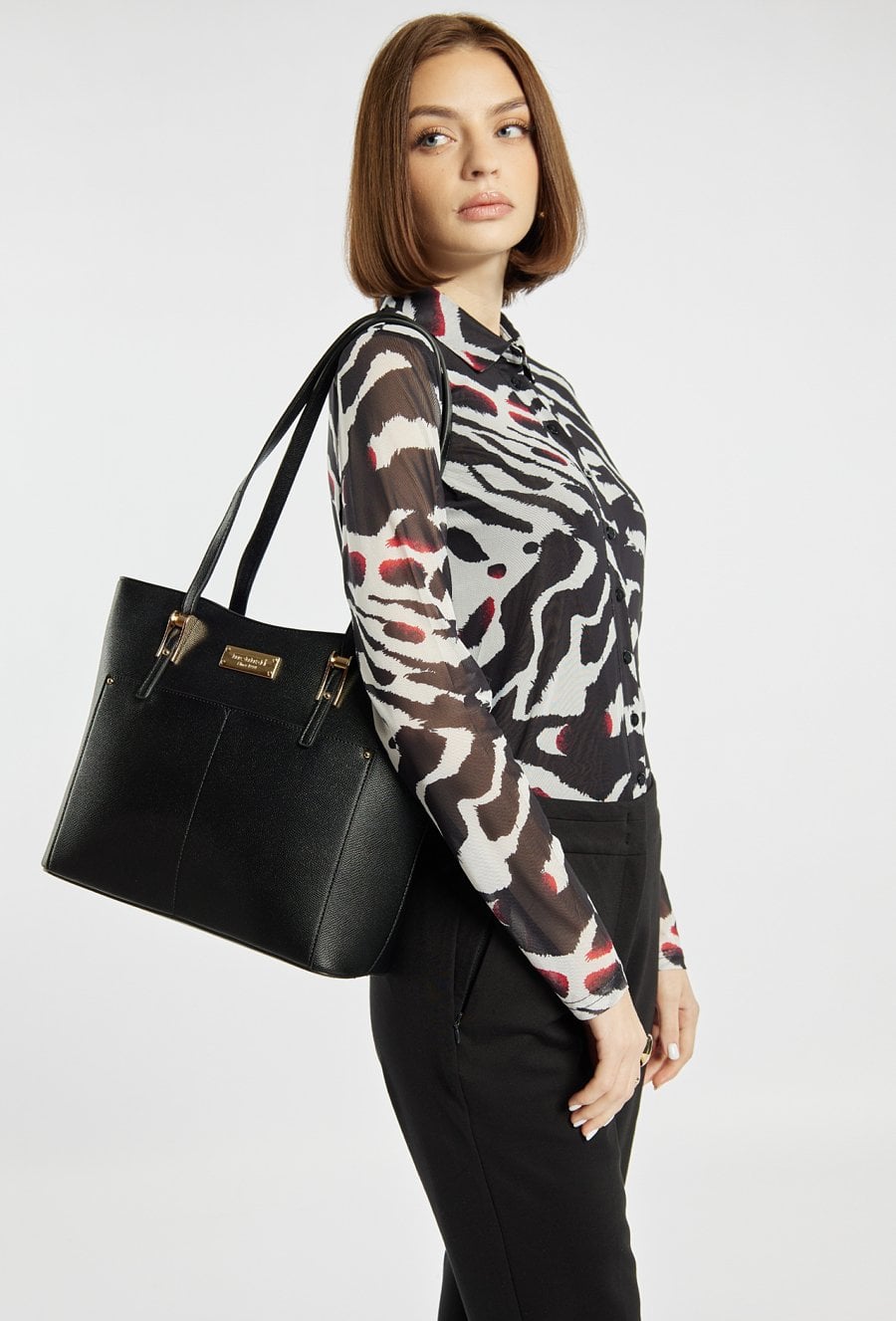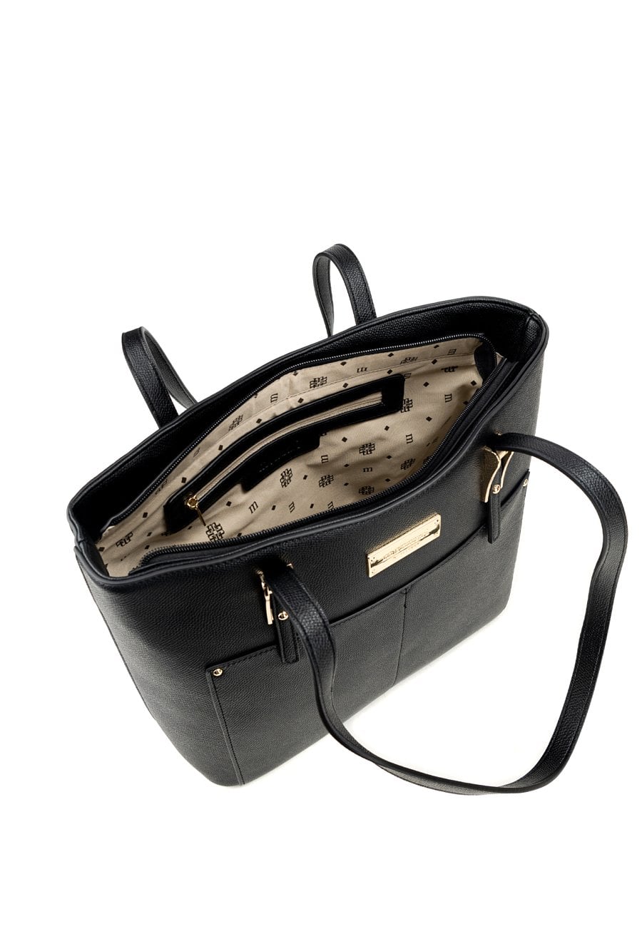 Torba damska o wymiarach 35 × 26 × 13 cm to wygodny wybór na co dzień- do pracy, na zakupy i na spotkania. Torba jest jednokomorowa, ma jasną, logowaną podszewkę oraz dodatkowe kieszonki na drobiazgi. Torba zawieszona na rączkach zapewnia komfort noszenia w dłoni lub na przedramieniu. Torbę należy przechowywać w dołączonym woreczku.