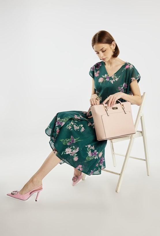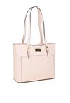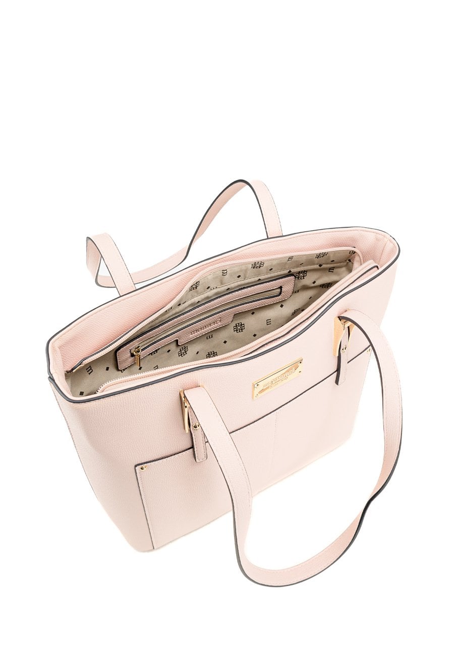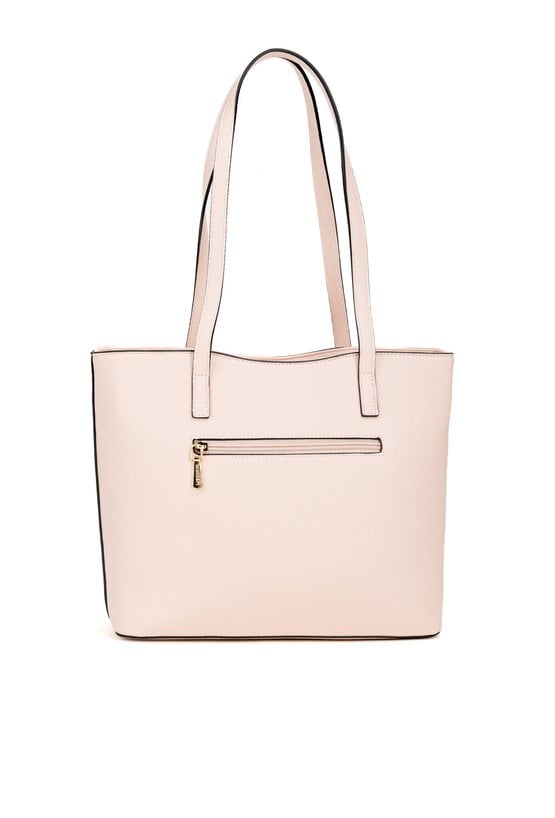Torba damska o wymiarach 35 × 26 × 13 cm to wygodny wybór na co dzień- do pracy, na zakupy i na spotkania. Torba jest jednokomorowa, ma jasną, logowaną podszewkę oraz dodatkowe kieszonki na drobiazgi. Torba zawieszona na rączkach zapewnia komfort noszenia w dłoni lub na przedramieniu. Torbę należy przechowywać w dołączonym woreczku.