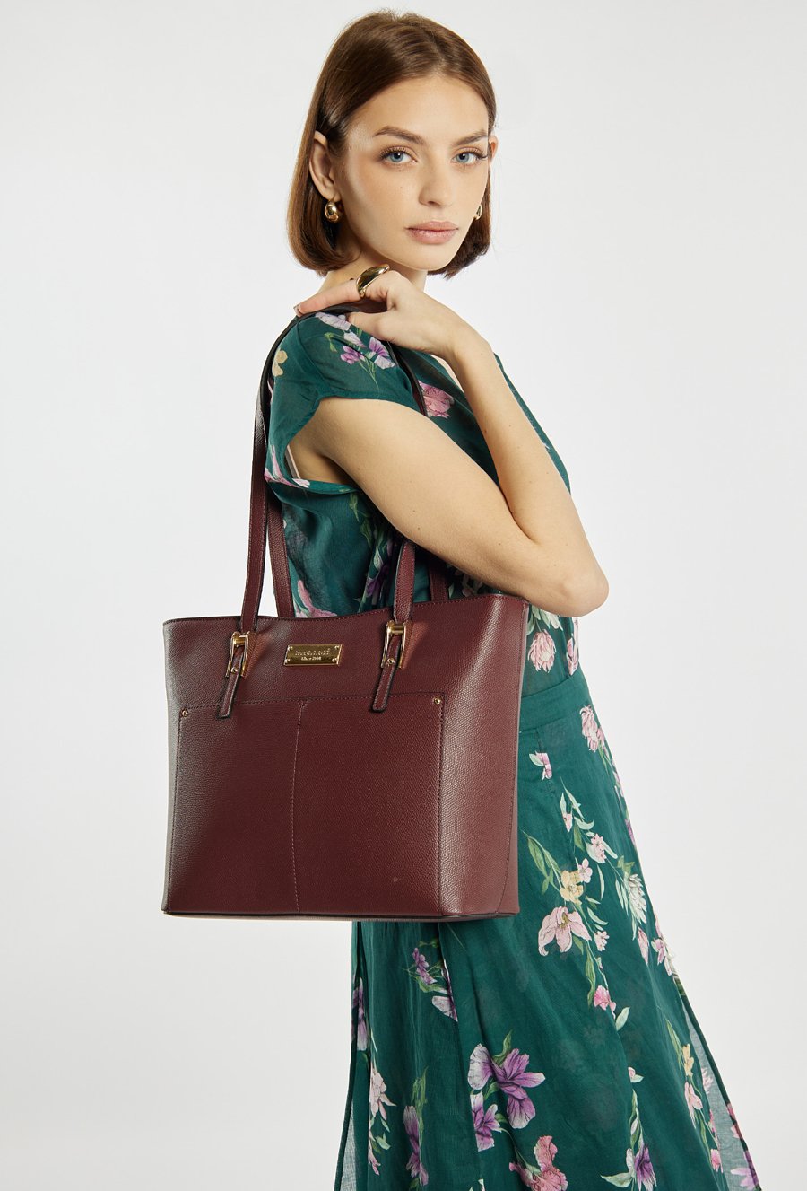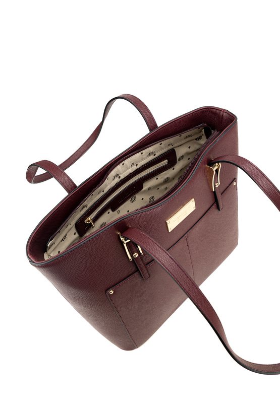 Torba damska o wymiarach 35 × 26 × 13 cm to wygodny wybór na co dzień- do pracy, na zakupy i na spotkania. Torba jest jednokomorowa, ma jasną, logowaną podszewkę oraz dodatkowe kieszonki na drobiazgi. Torba zawieszona na rączkach zapewnia komfort noszenia w dłoni lub na przedramieniu. Torbę należy przechowywać w dołączonym woreczku.