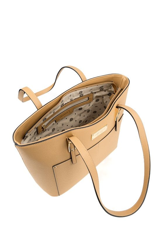 Torba damska o wymiarach 35 × 26 × 13 cm to wygodny wybór na co dzień- do pracy, na zakupy i na spotkania. Torba jest jednokomorowa, ma jasną, logowaną podszewkę oraz dodatkowe kieszonki na drobiazgi. Torba zawieszona na rączkach zapewnia komfort noszenia w dłoni lub na przedramieniu. Torbę należy przechowywać w dołączonym woreczku.
