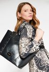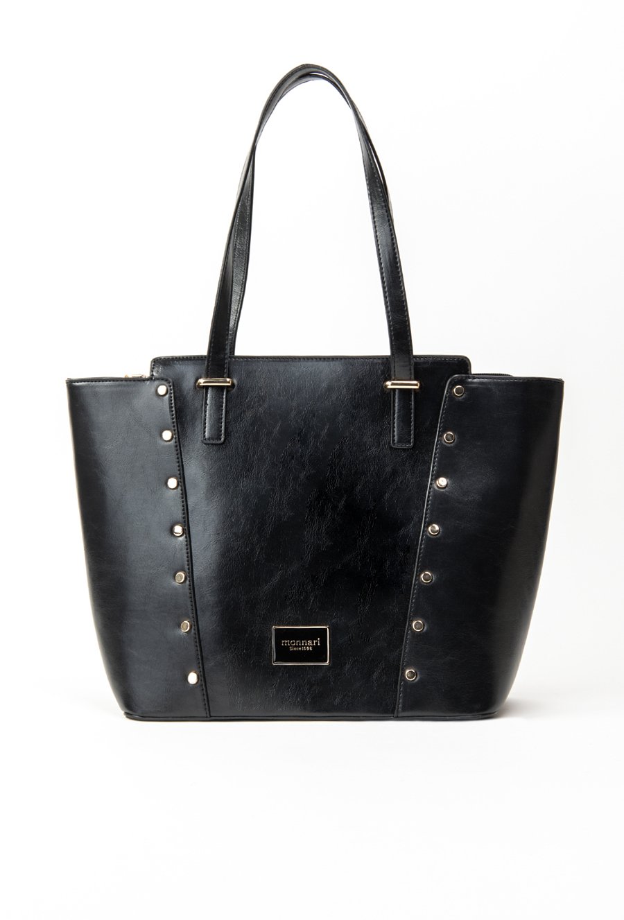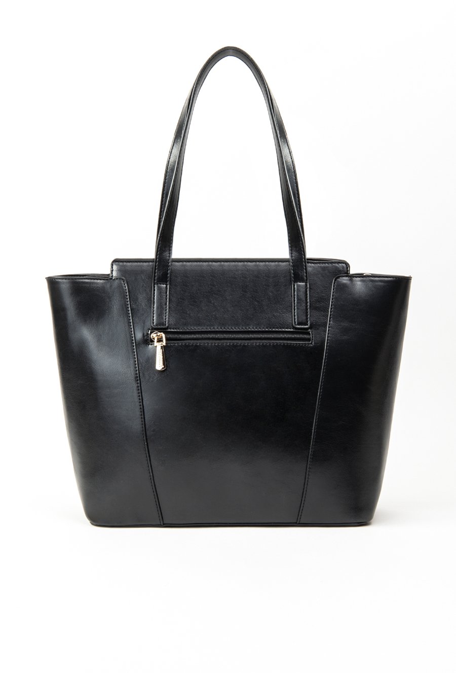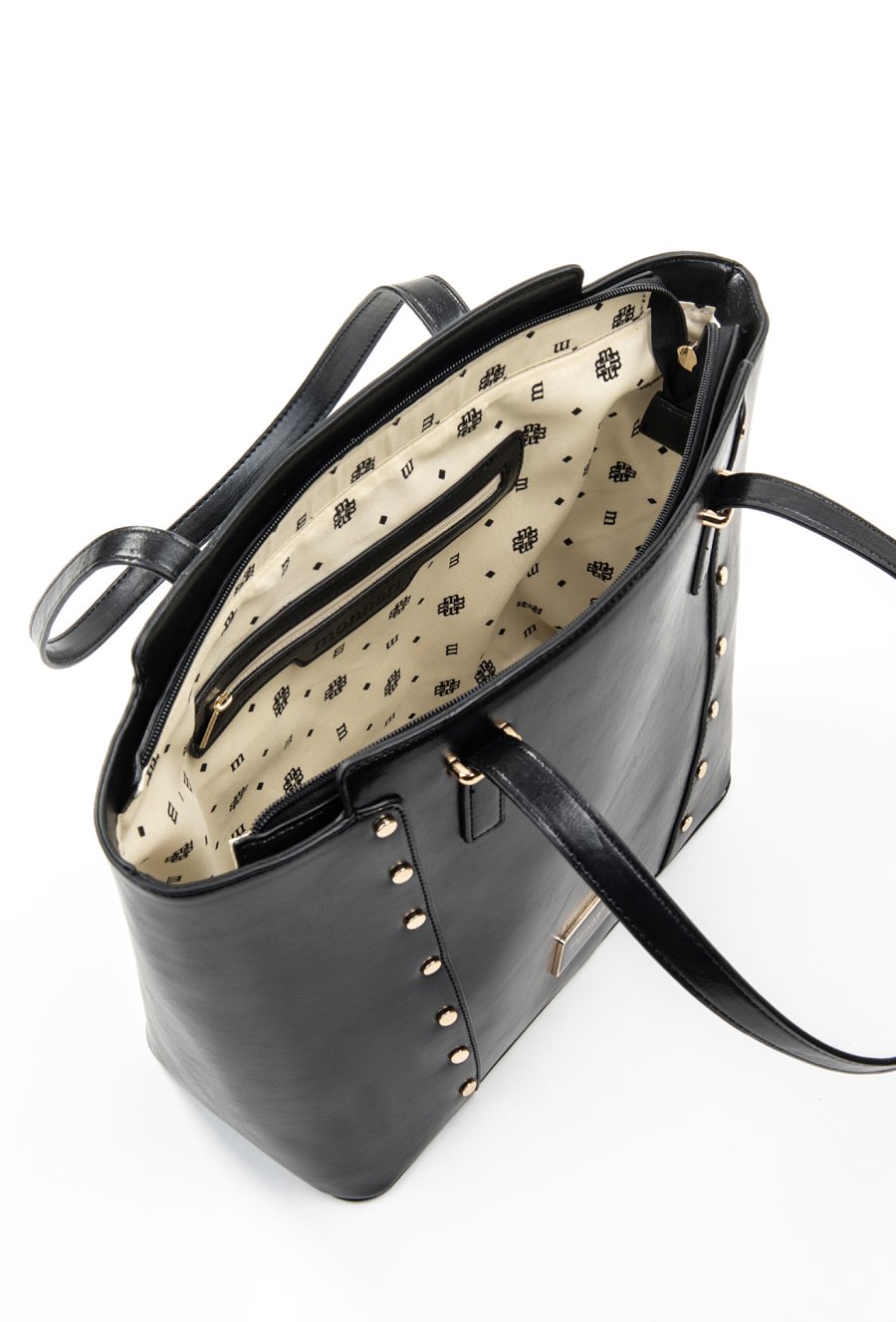 Torba damska typu shopper z ozdobną aplikacją. Torba jednokomorowa o jasnym wnętrzu z dodatkowymi kieszonkami na drobiazgi oraz kieszonką z tyłu. Torba zapinana na suwak. Torba zawieszona na rączkach. Torbę należy przechowywać w dołączonym woreczku. Wymiary Torby: 41 cm x 30,5 cm x 14,5 cm
