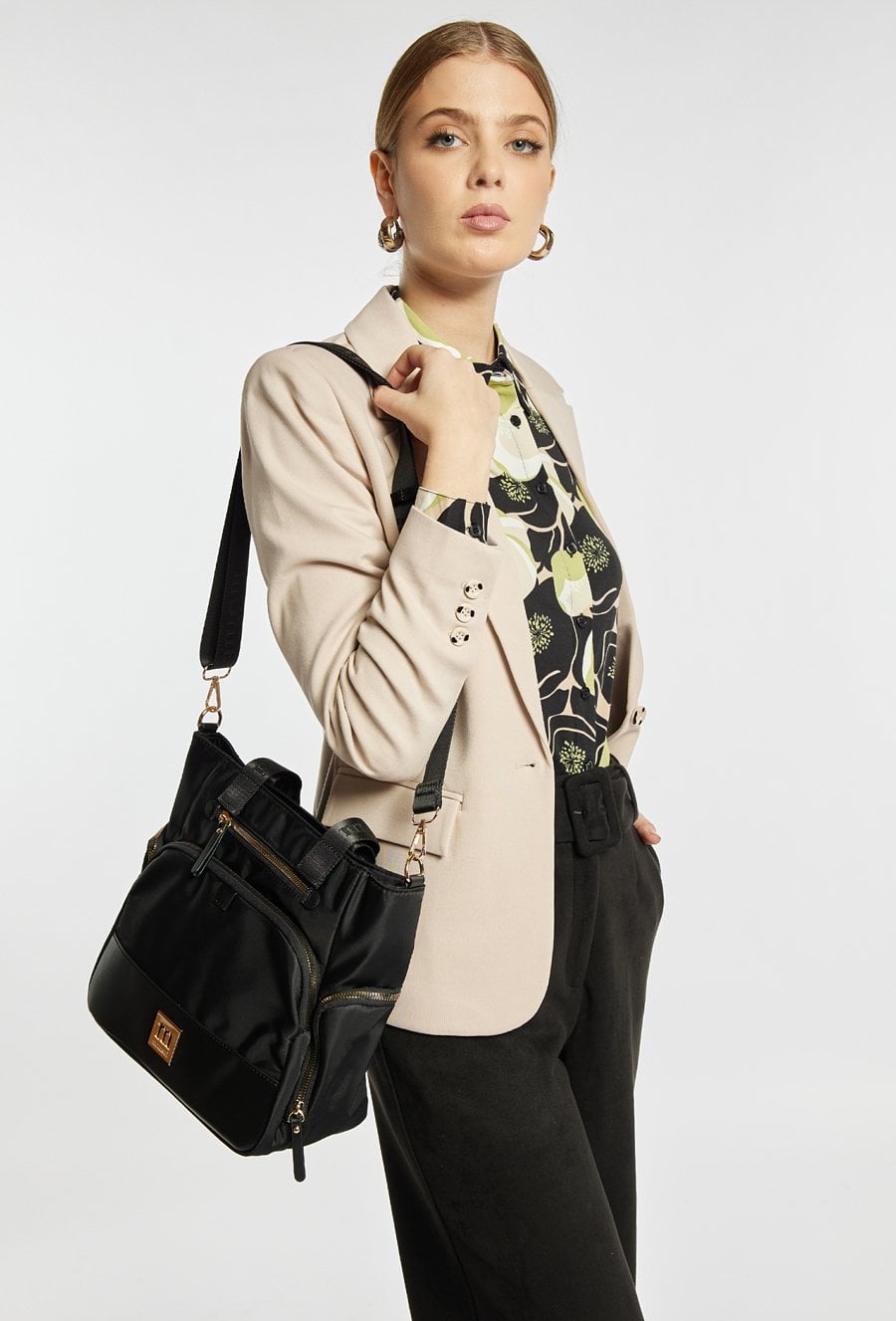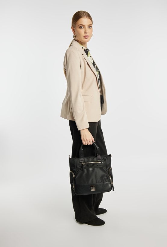 Torba damska z licznymi kieszonkami to praktyczny i stylowy wybór na co dzień. Torba posiada jednokomorowe wnętrze wykończone jasną, logowaną podszewką, która dodaje jej elegancji. Torba została zawieszona na wygodnych, małych rączkach, a w zestawie znajduje się również regulowany, odpinany pasek, umożliwiający noszenie jej na różne sposoby. Torbę należy przechowywać w dołączonym woreczku, aby zachować jej kształt i chronić przed zabrudzeniami. Wymiary modelu to 32 × 28,5 × 12 cm.