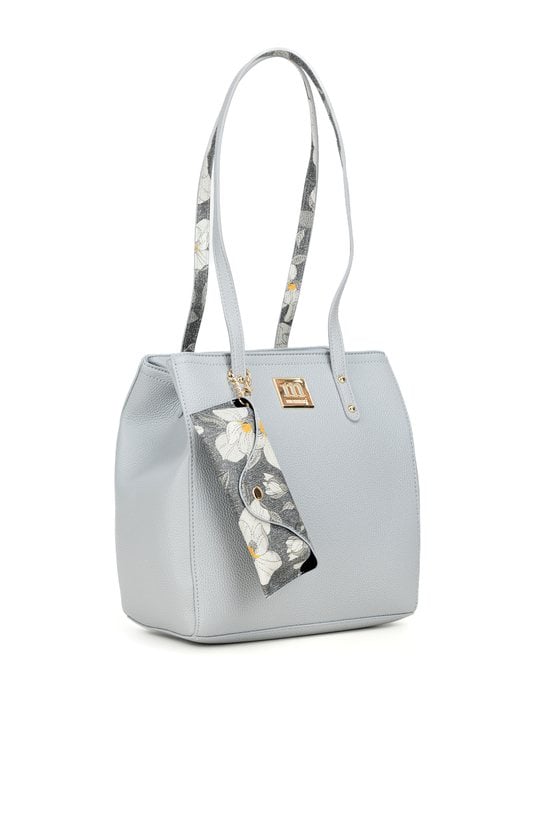 Torba damska z przyczepioną, wzorzystą małą saszetką to praktyczny dodatek, który ułatwia przechowywanie najważniejszych drobiazgów. Torba jest jednokomorowa i ma jasną, logowaną podszewkę oraz dodatkowe kieszonki. Torba została zawieszona na dłuższych rączkach, co zapewnia wygodę noszenia i sprawia, że świetnie sprawdzi się na co dzień. Wymiary torby: 27 × 27,5 × 15,5 cm. Torbę należy przechowywać w dołączonym woreczku.