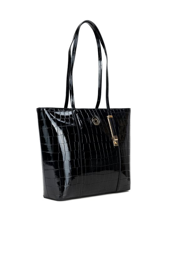 Torba damska typu shopper z modnym wzorem to stylowy i praktyczny dodatek do codziennych stylizacji. Torba jest jednokomorowa, wykończona jasną, logowaną podszewką oraz dodatkowymi kieszonkami na drobiazgi, dzięki czemu łatwo utrzymasz porządek we wnętrzu. Torba została zawieszona na wygodnych rączkach i świetnie sprawdzi się do biura, pomieści niezbędne akcesoria oraz dokumenty. Wymiary: 37 × 27,5 × 10 cm.