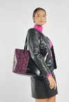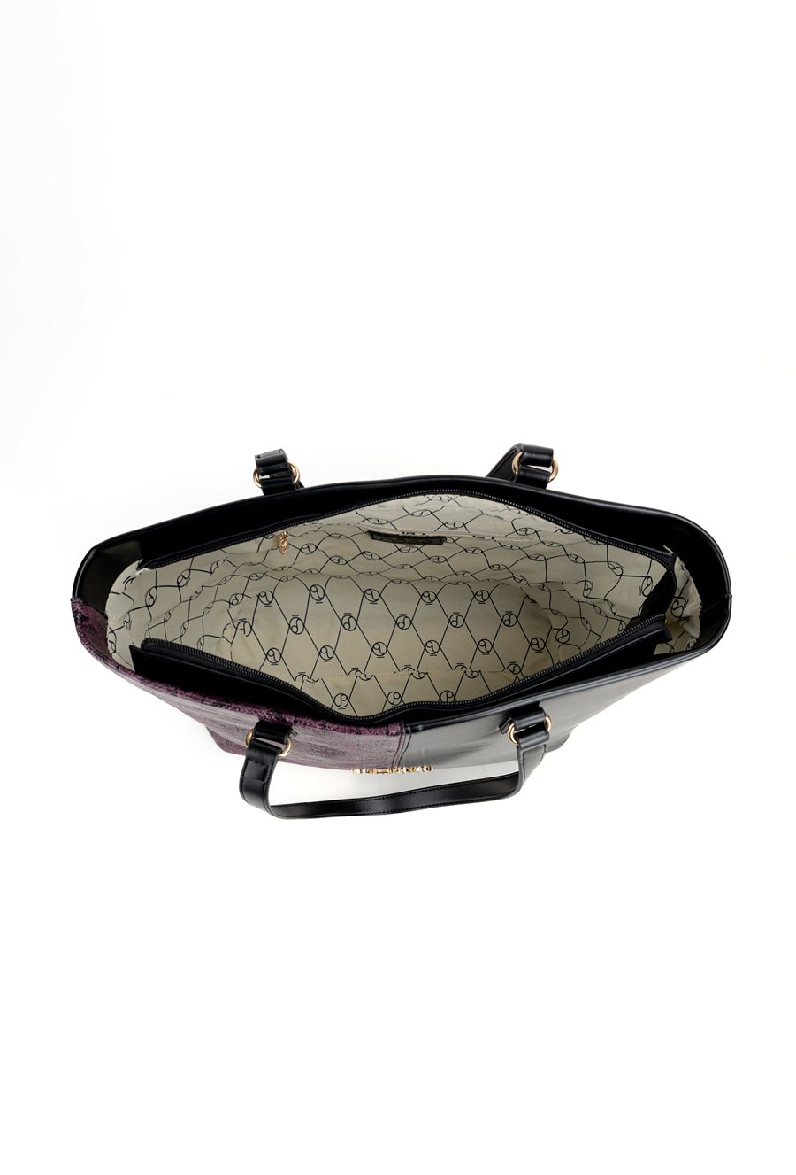 Stylowa torba damska zawieszona na wygodnych rączkach, to doskonały wybór na co dzień. Pojemne, jednokomorowe wnętrze z jasną, logowaną podszewką gwarantuje komfort i funkcjonalność użytkowania. Subtelny wzór dodaje torbie wyrafinowanego uroku. Torbę należy przechowywać w dołączonym woreczku. Wymiary: 42 cm x 28 cm x 12 cm.