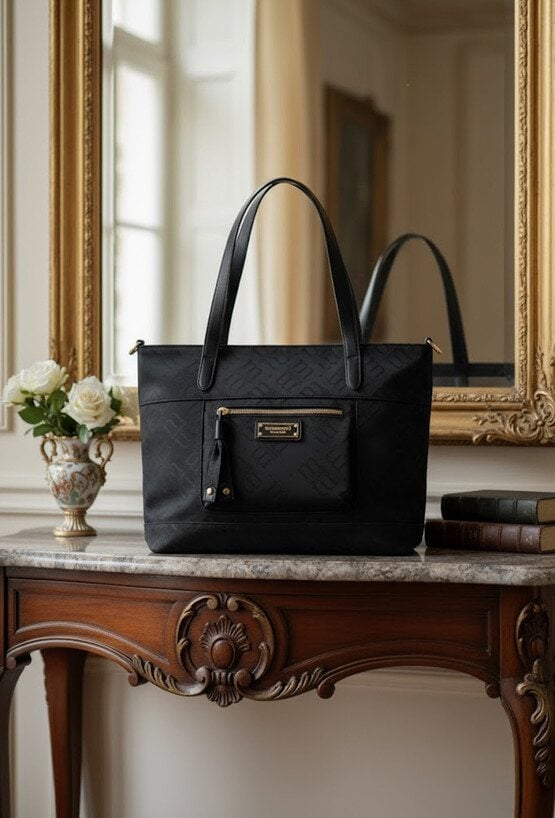 Funkcjonalna torba damska zawieszona na wygodnych rączkach, idealna na co dzień. Model jednokomorowy z jasną, logowaną podszewką został wyposażony w praktyczne kieszonki wewnętrzne, a także dodatkowe kieszenie umieszczone z przodu i z tyłu – doskonałe na drobiazgi, do których potrzebujesz szybkiego dostępu. W zestawie znajduje się regulowany pasek, który pozwala nosić torbę również na ramieniu. Torbę należy przechowywać w dołączonym woreczku. Wymiary: 38 cm x 29 cm x 12 cm.