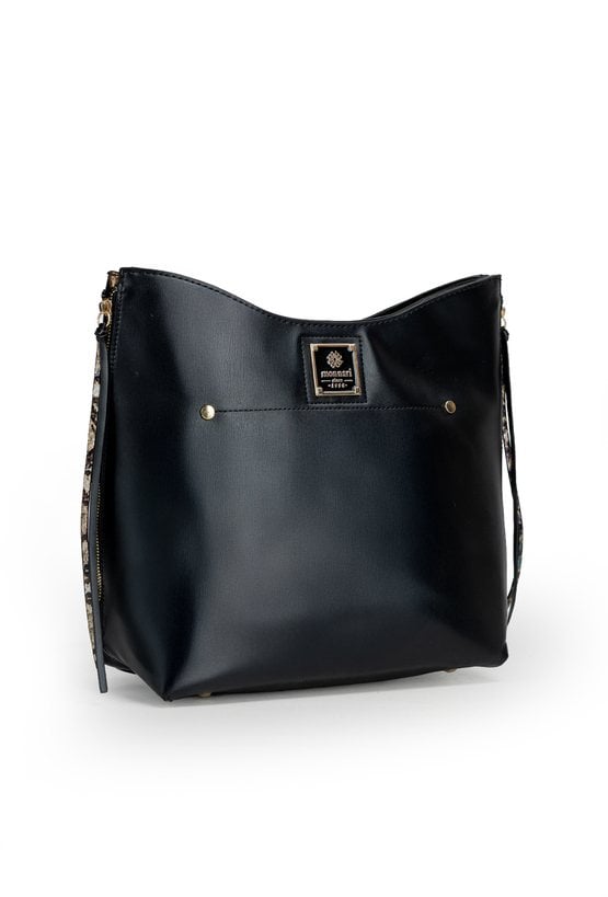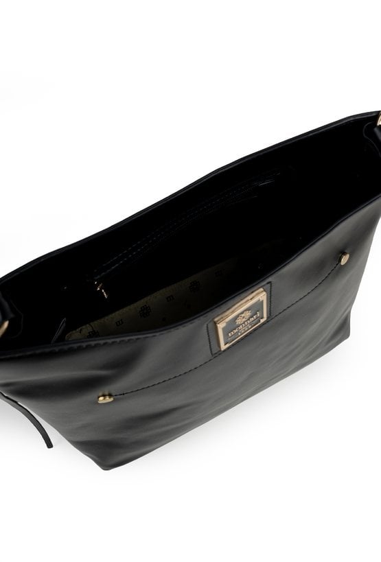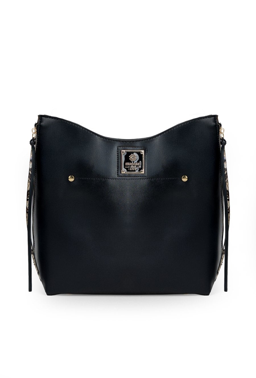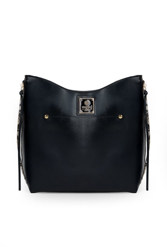 Torba damska z kolekcji Premium o wymiarach 33,5 cm x 27 cm x 9 cm. Model jednokomorowy, z jasną, logowaną podszewką oraz dodatkowymi kieszonkami na drobiazgi. Zawieszona na regulowanym pasku, zapewnia wygodę noszenia. Stylowym akcentem są dwa boczne suwaki ozdobione wzorzystymi frędzlami. Torbę należy przechowywać w załączonym woreczku ochronnym.