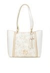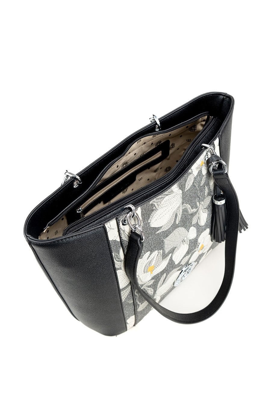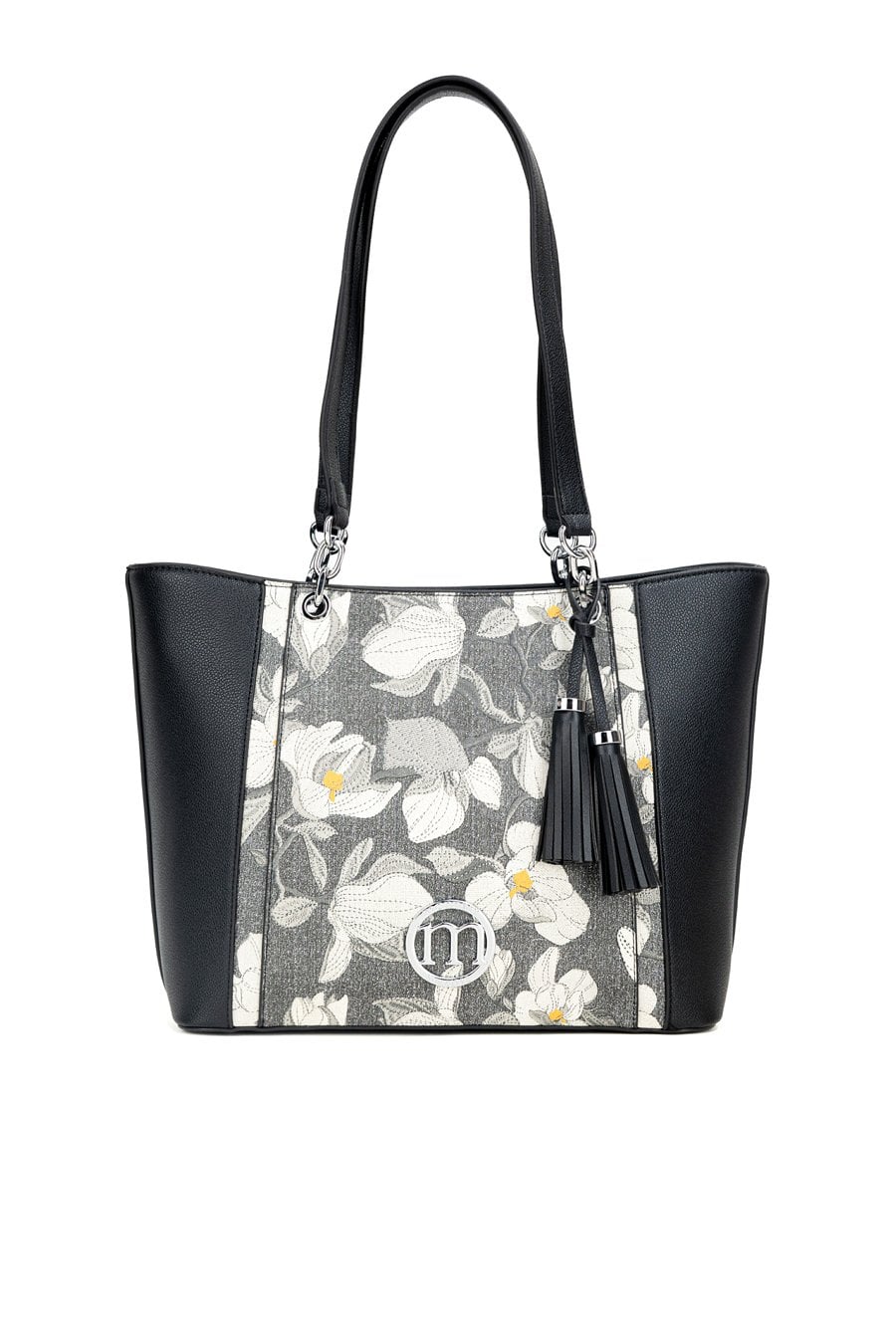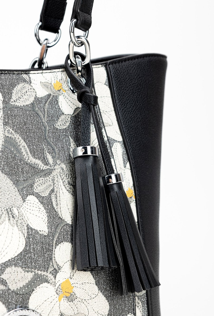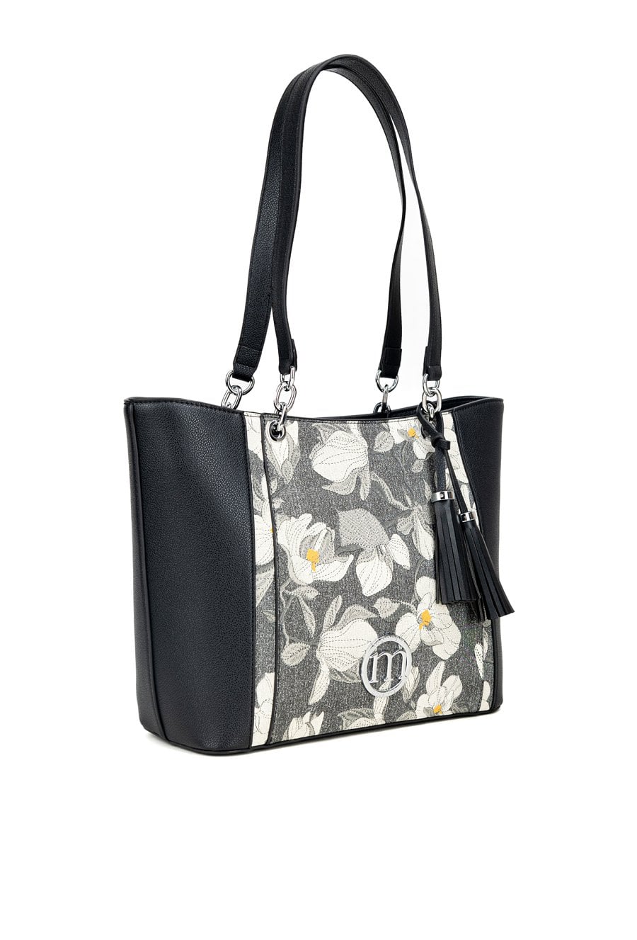 Torba damska typu shopper z kwiatowym wzorem z przodu to efektowny dodatek, który ożywi codzienne stylizacje. Torba jest jednokomorowa, wykończona jasną, logowaną podszewką oraz dodatkowymi kieszonkami na drobiazgi. Torba została zawieszona na wygodnych rączkach, a jej charakter podkreślają modne frędzle przyczepione do rączki, dodające całości lekkości i stylu. Torbę należy przechowywać w dołączonym woreczku. Wymiary: 37 cm x 25 cm x 14 cm.
