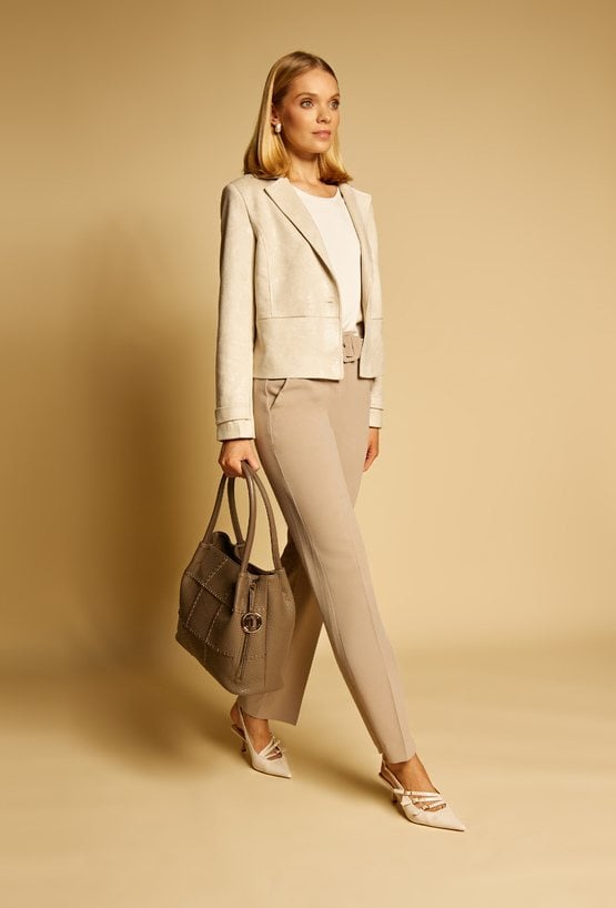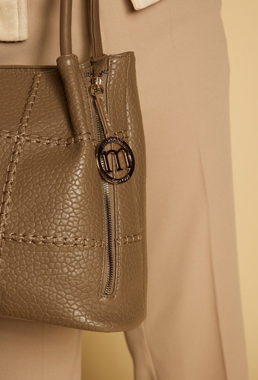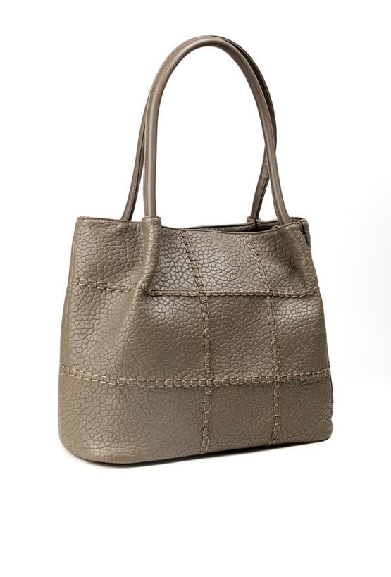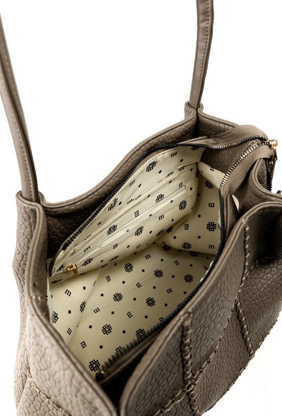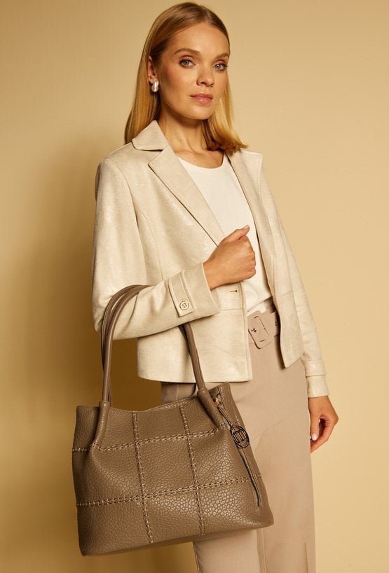 Torba damska typu shopper o wymiarach 40 cm x 28 cm x 14 cm. Model jednokomorowy, z jasną, logowaną podszewką oraz dodatkowymi kieszonkami na drobiazgi. Całość zdobią dekoracyjne przeszycia, które podkreślają jej nowoczesny i elegancki charakter. Torba zawieszona na wygodnych rączkach. Torbę należy przechowywać w załączonym woreczku ochronnym.
